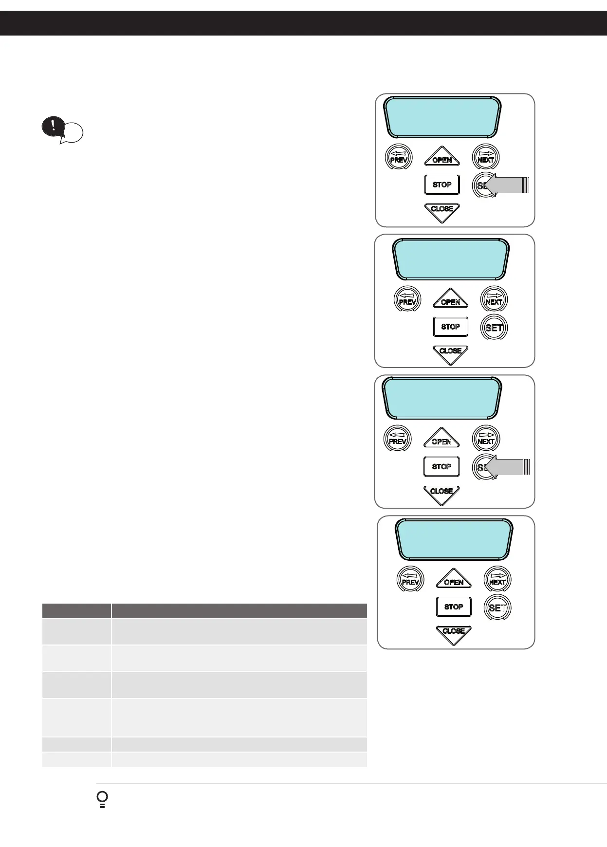 HELPFUL TIP: To access the PREV, NEXT and SET buttons,