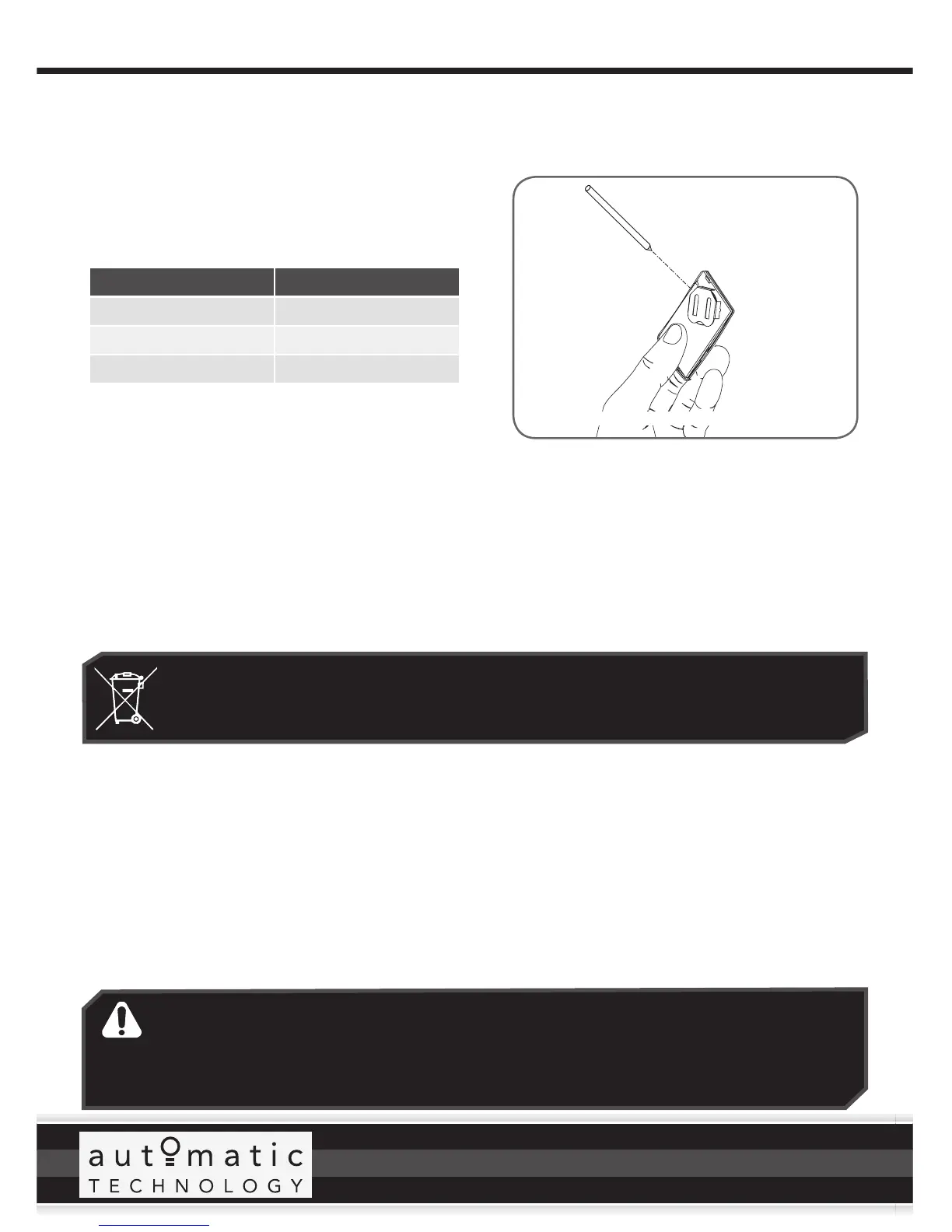 Refer to the Automatic Technology website for information on where to recycle batteries in Australia.