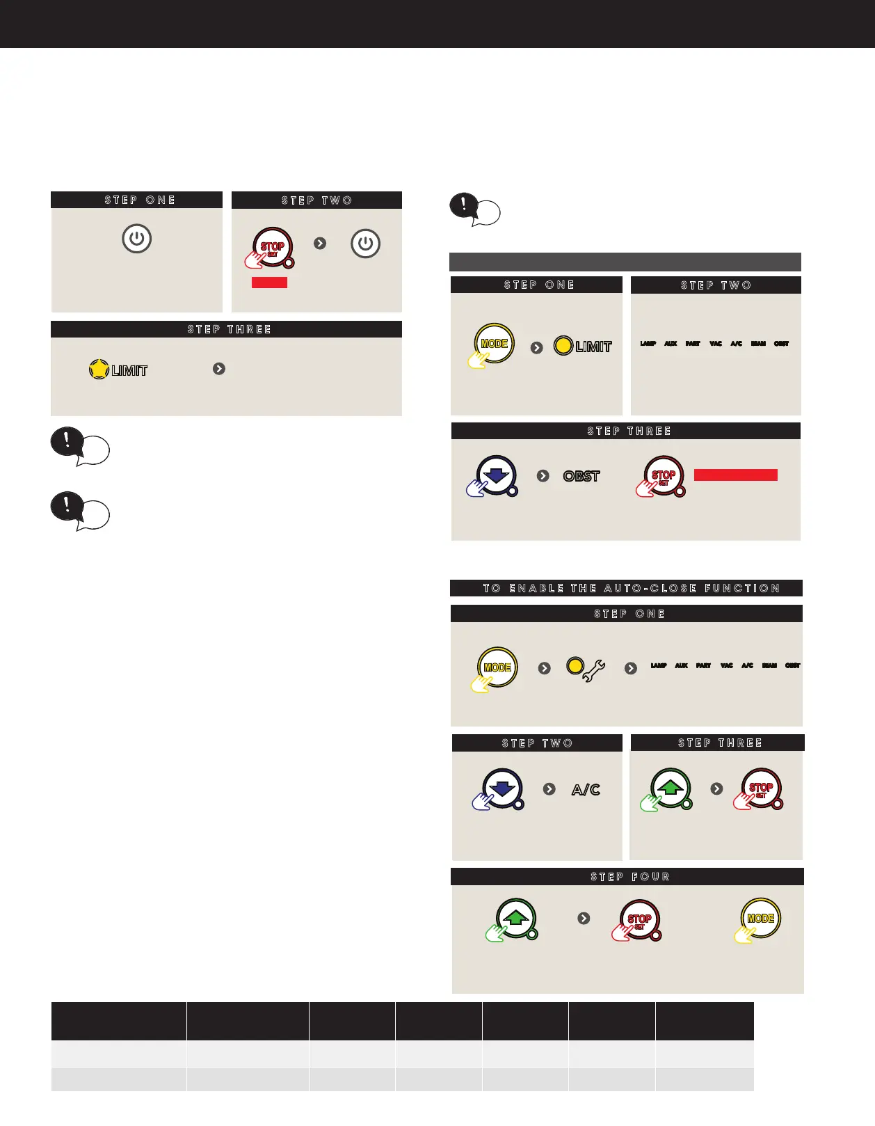 a pre-set time. Safety beams must be installed in order to run the Auto-