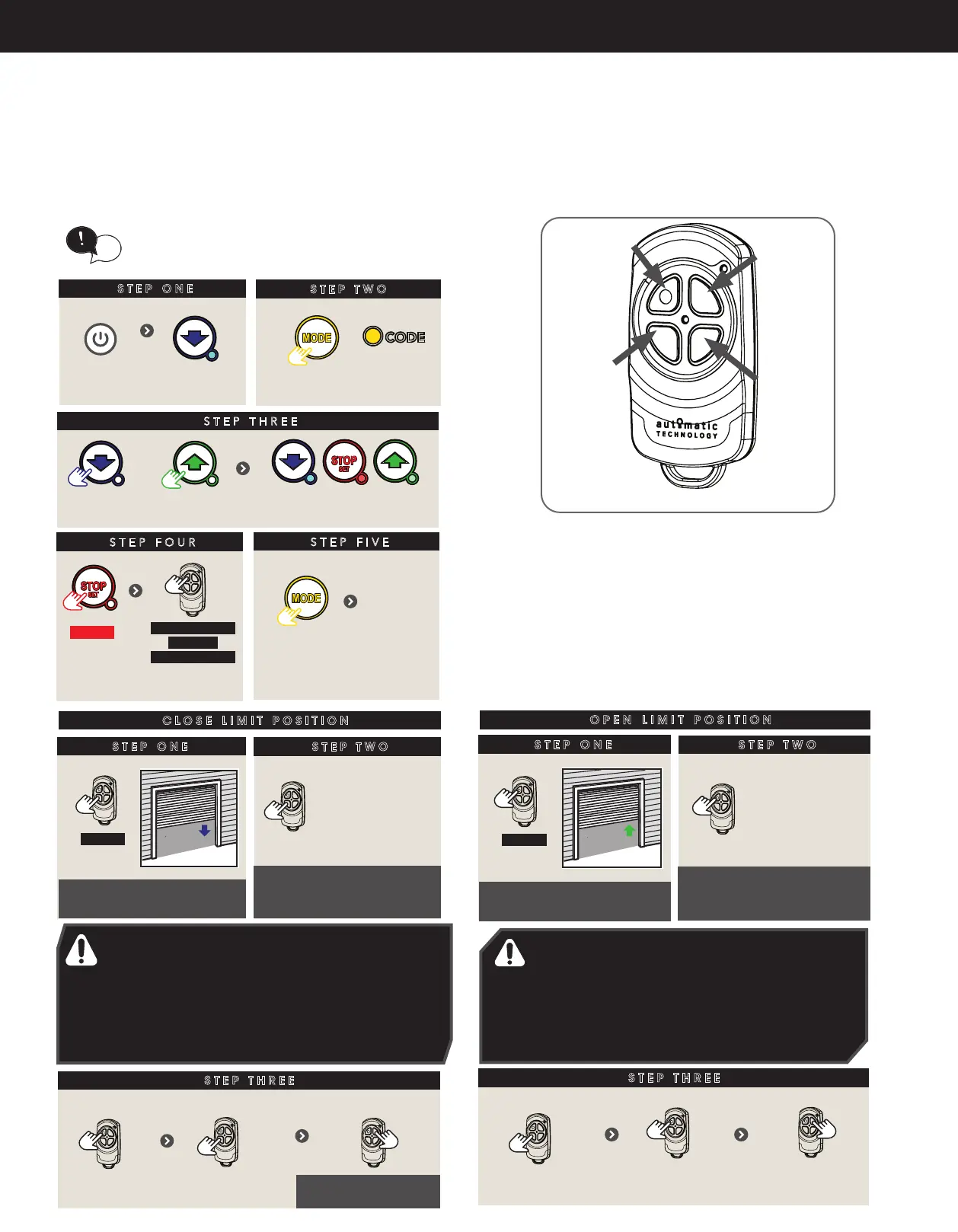 assigned to the transmitter’s buttons is of no concern here as the buttons are temporally assigned to OPEN, SET, CHANGE DIRECTION and