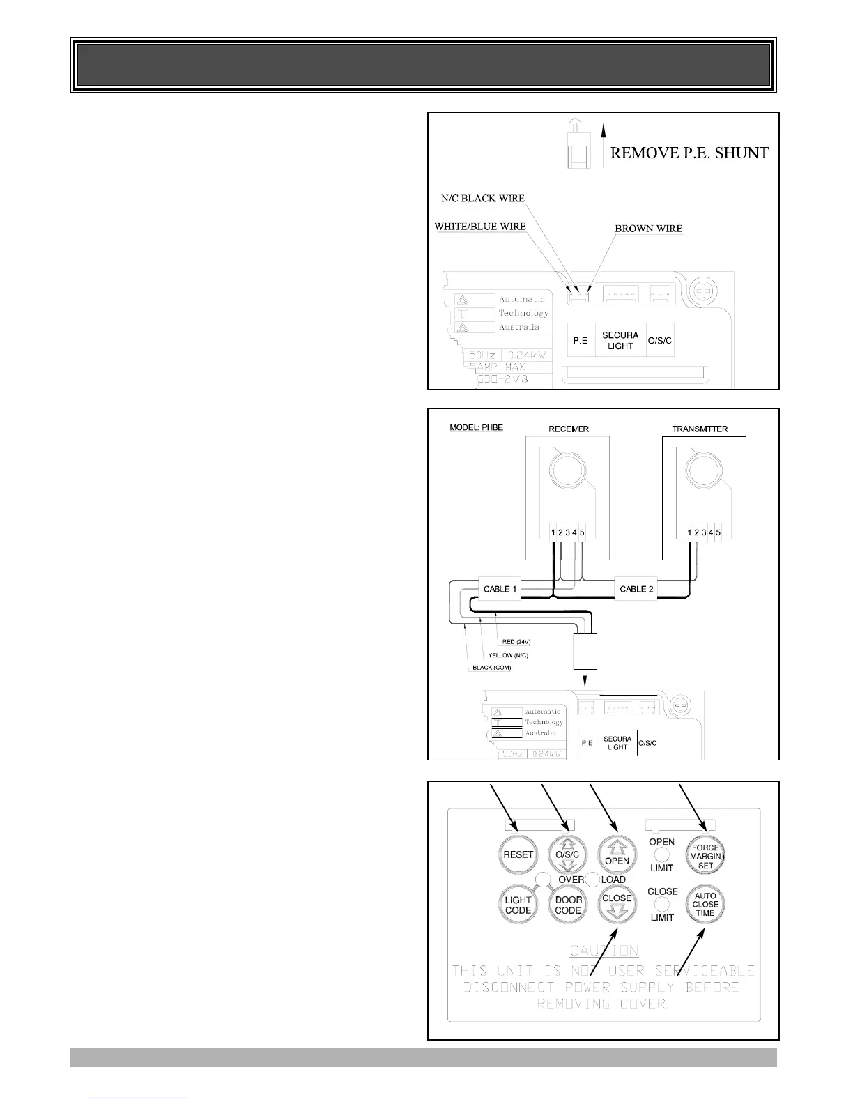 Locate the Photo Electric Beam (P.E.) normally closed contact