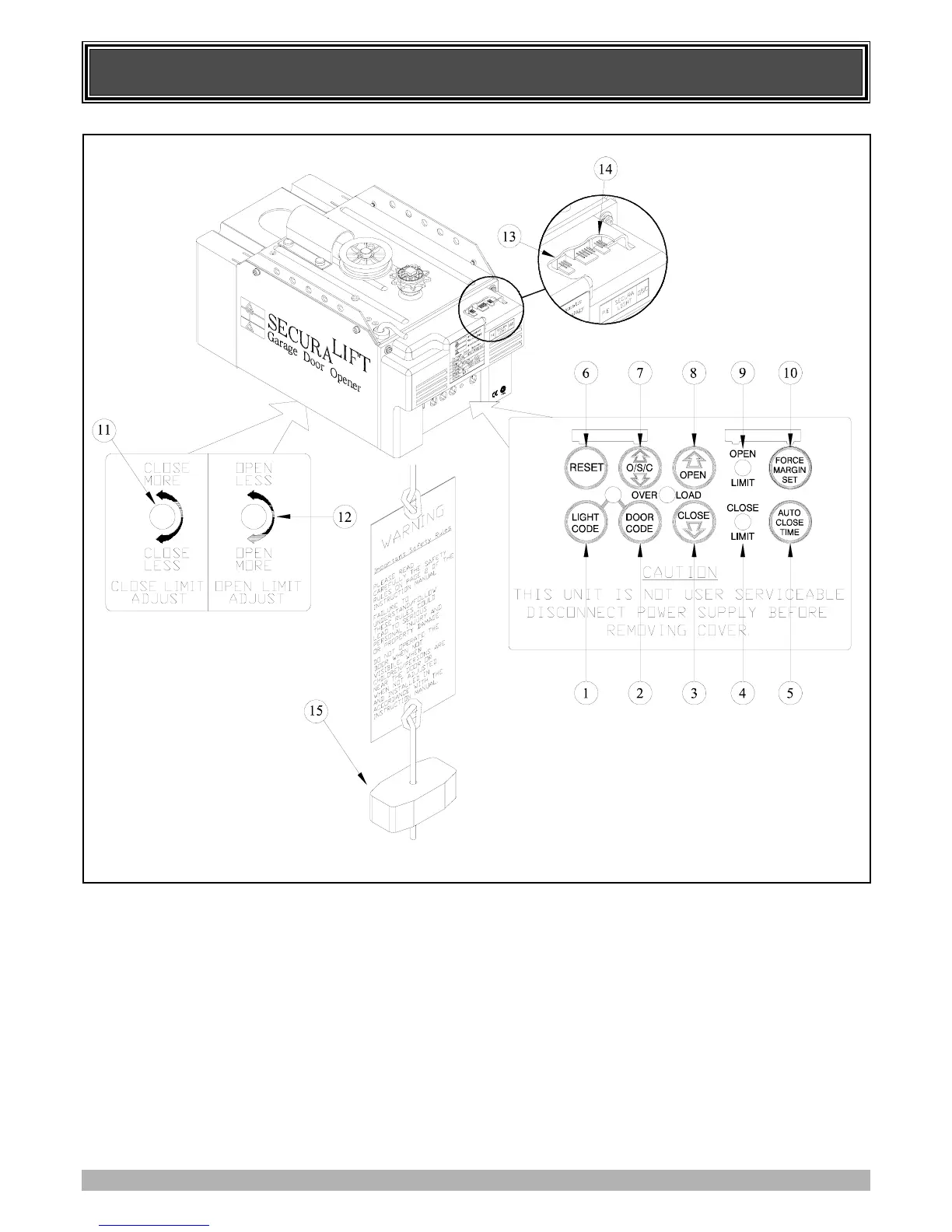 11) CLOSE LIMIT ADJUST SCREW (RED)