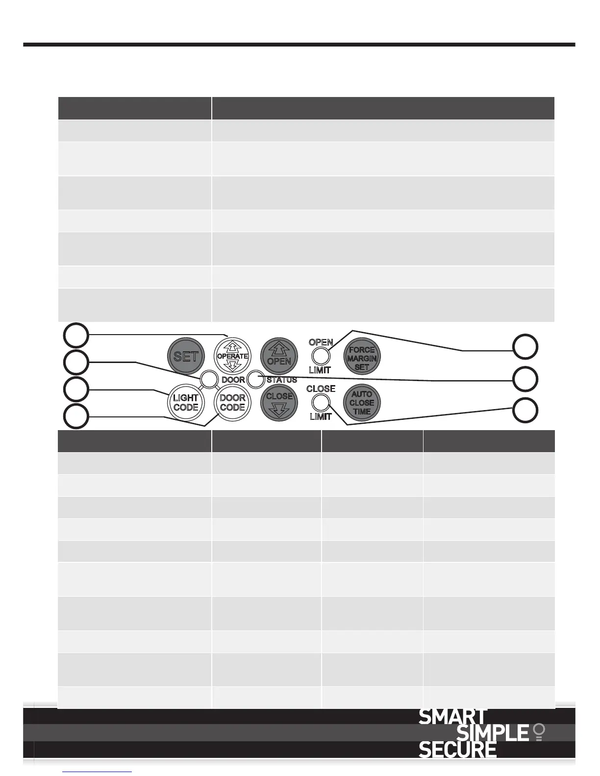 1. OPERATE Opens/stops/closes the door