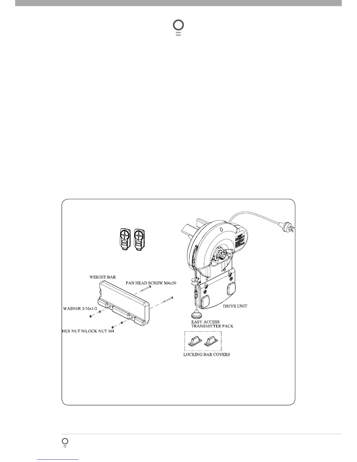 Pan head screw M4x50mm (not included in some models) 2
