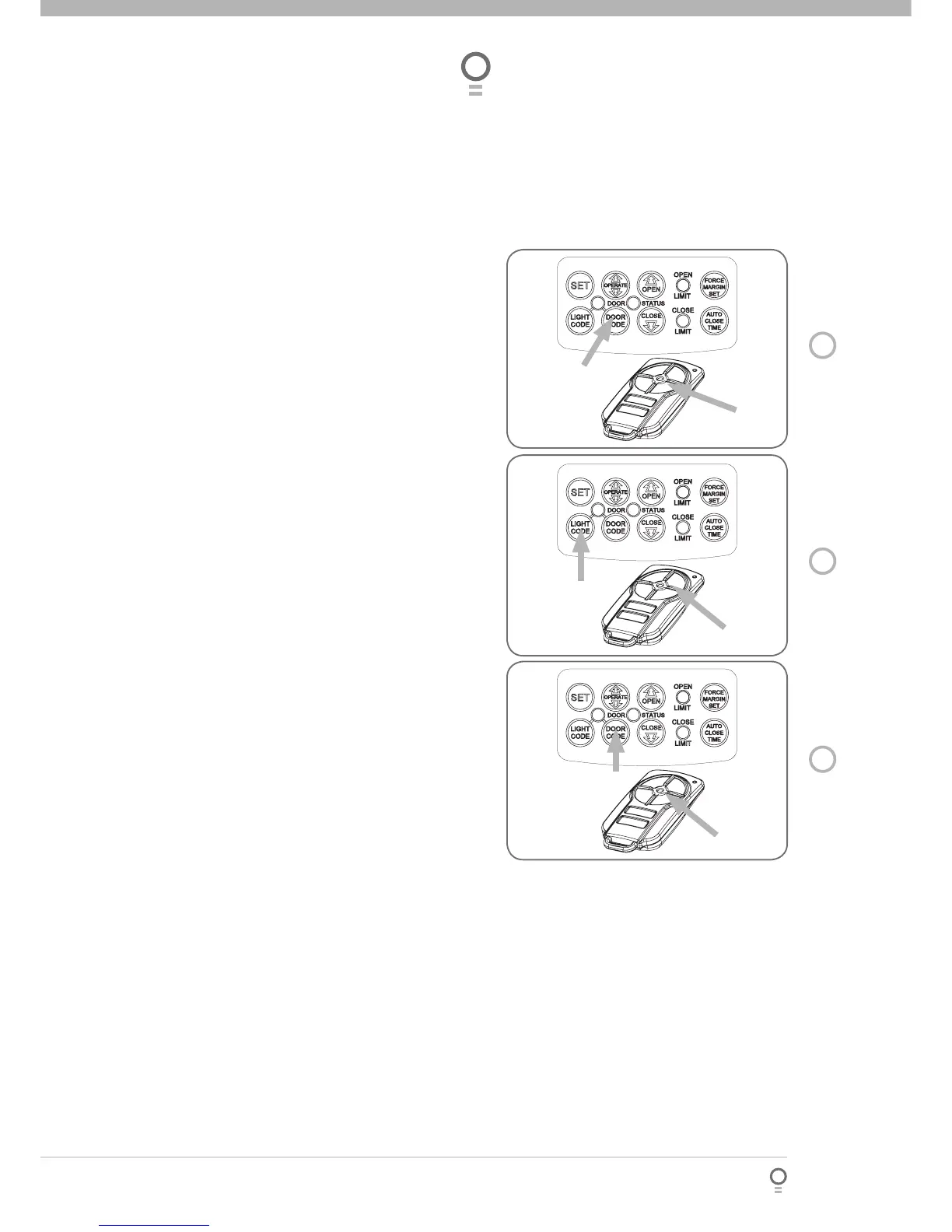 Briefly press the DOOR CODE button three times,