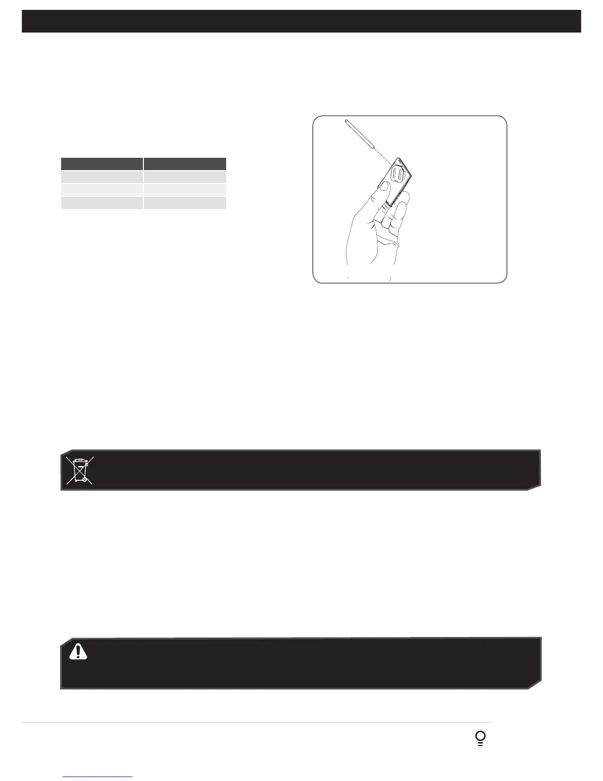 that the battery should not be placed in the municipal waste. Check your local regulations for appropriate