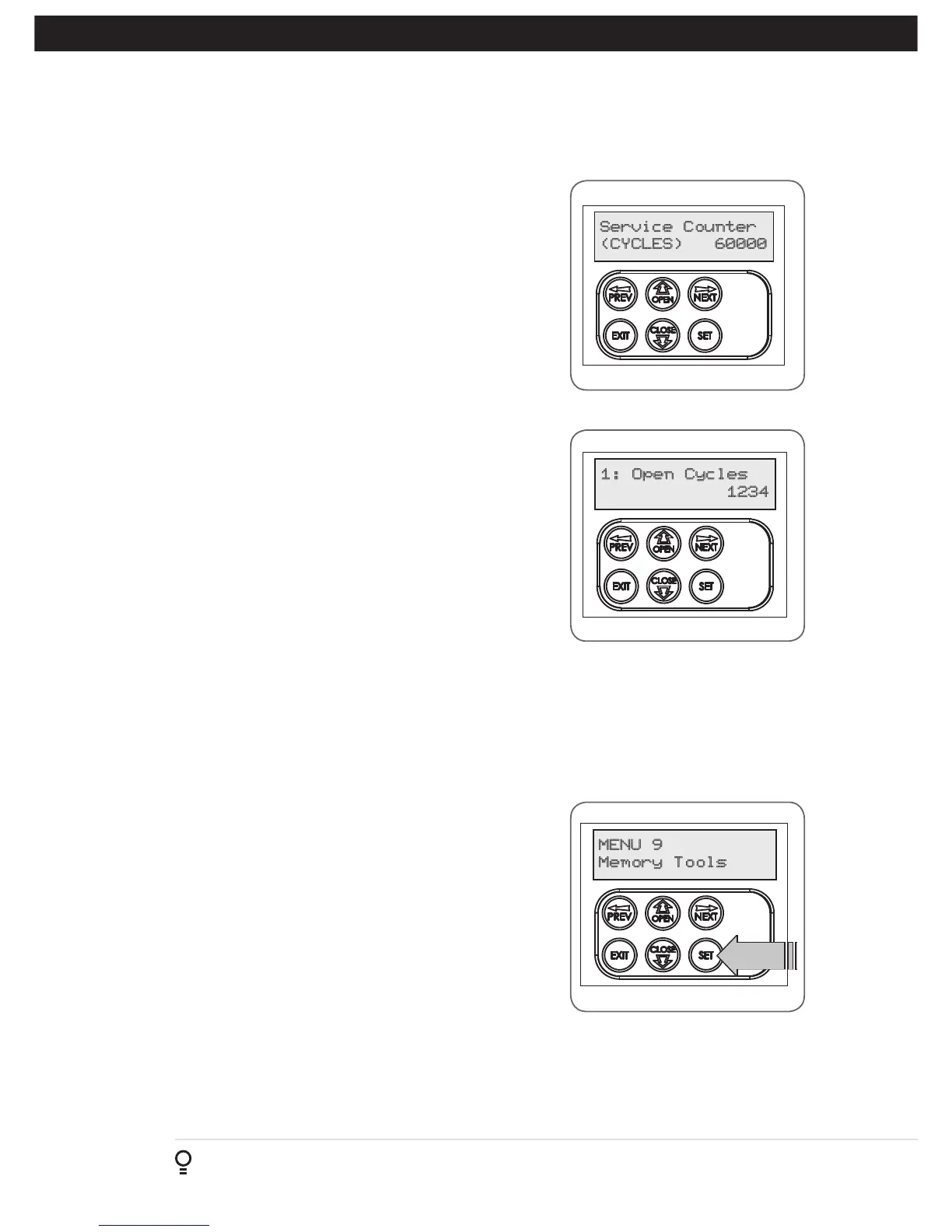 or NEXT buttons can be used to view the Memory Tool options. To