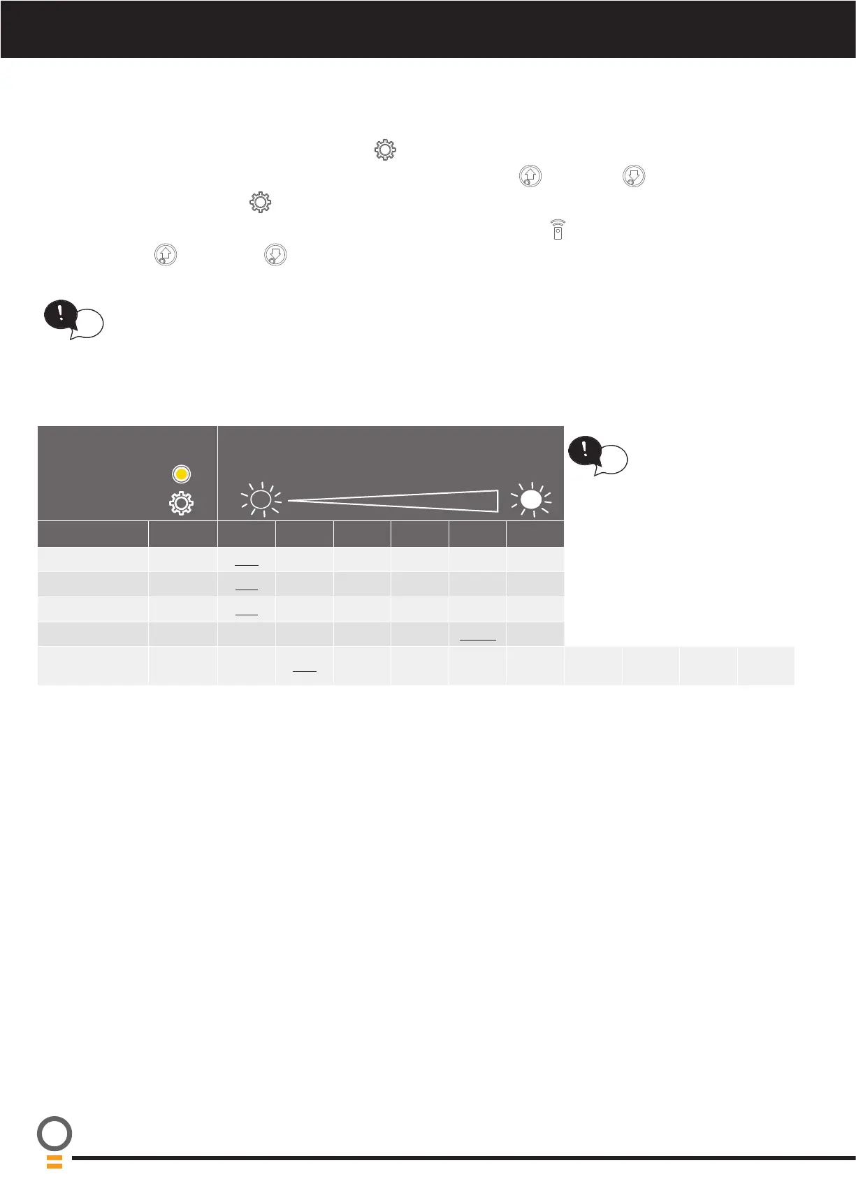 LED. The selected parameter’s value is indicated by the main light’s brightness.