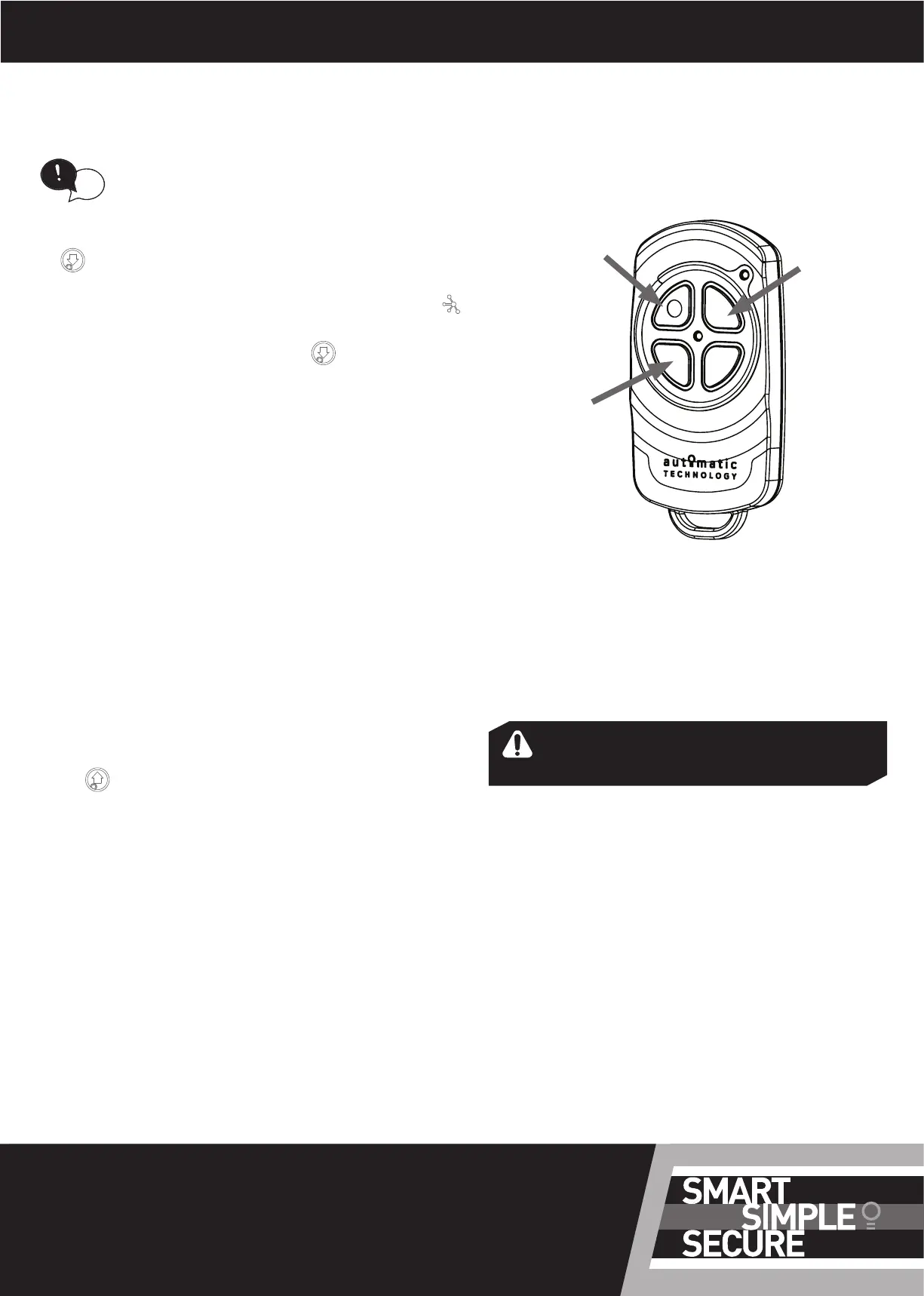 f. Release both buttons. The transmitter button is now coded,