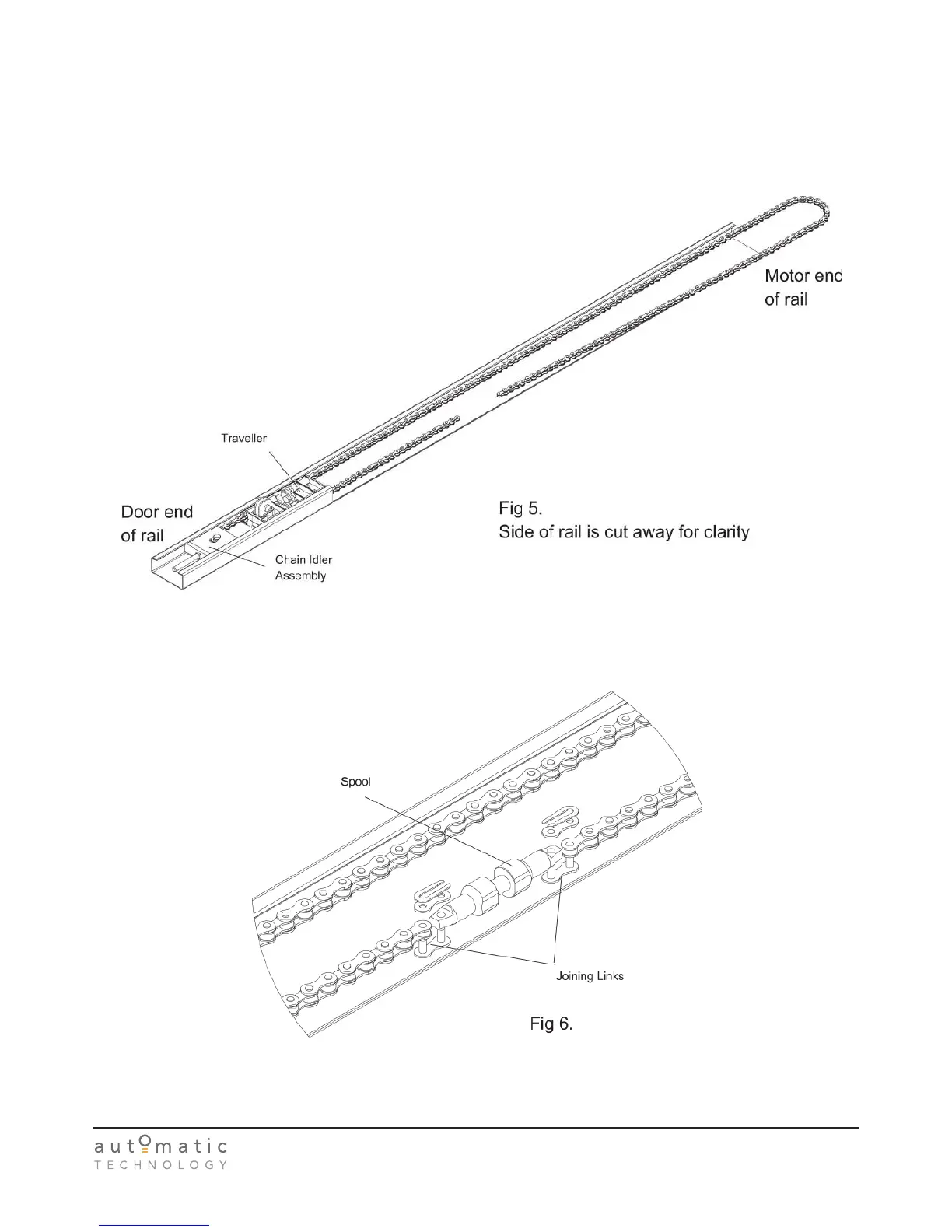 of the rail. Locate chain around the Chain Idler Wheel and through the Traveller as shown (see fi g 5). Ensure chain