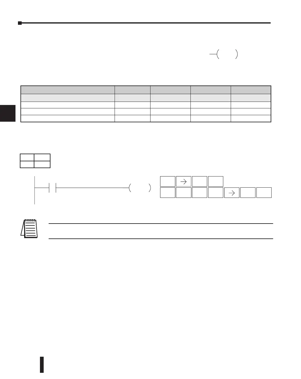 NOTE: To generate a “one–shot” pulse on an on–to–off transition, place a NOT instruction immediately