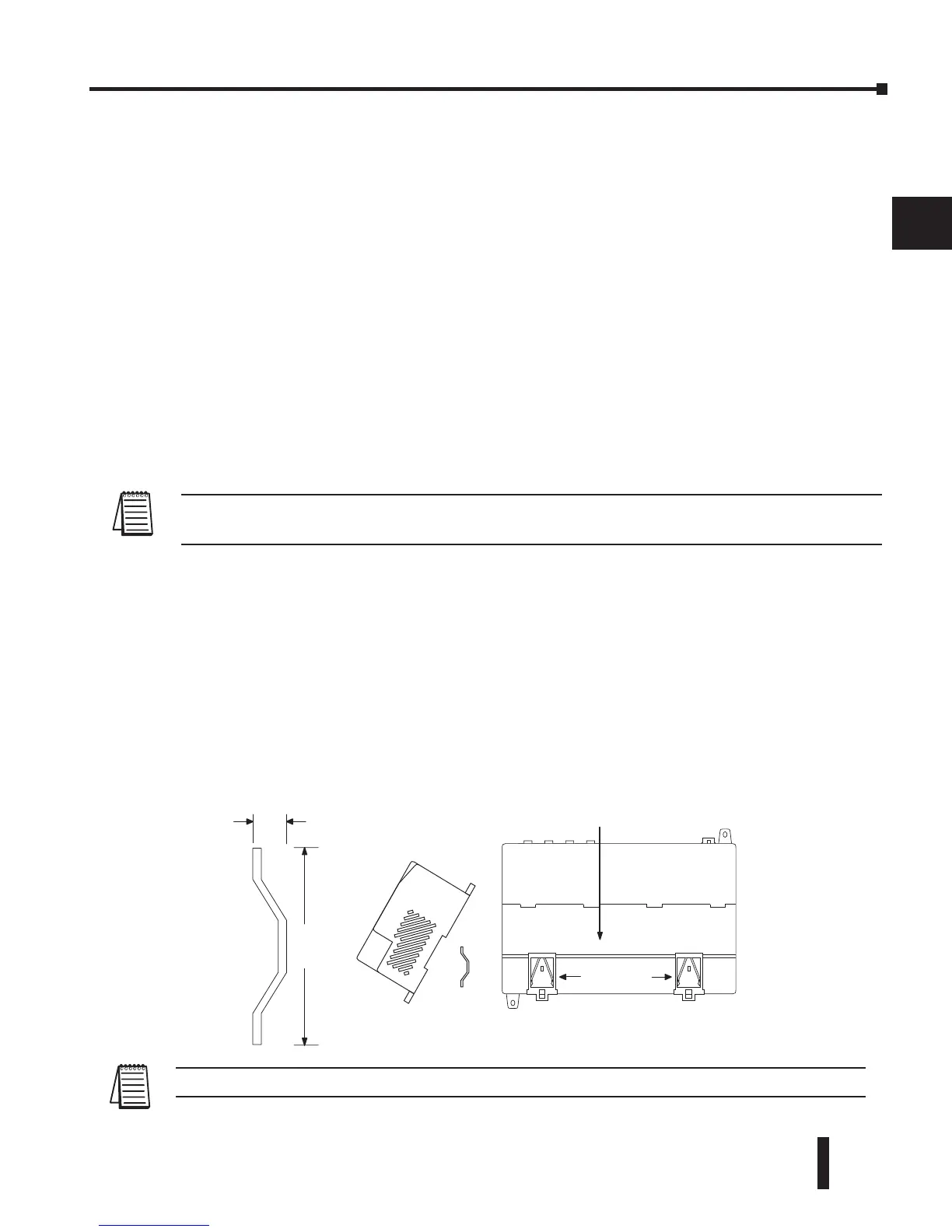 are two small retaining clips. To secure the PLC to a DIN rail, place it onto the rail and gently