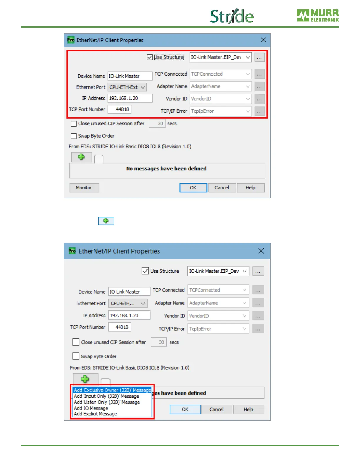 Fig. 7-7: EtherNet/IP Device Message Options.