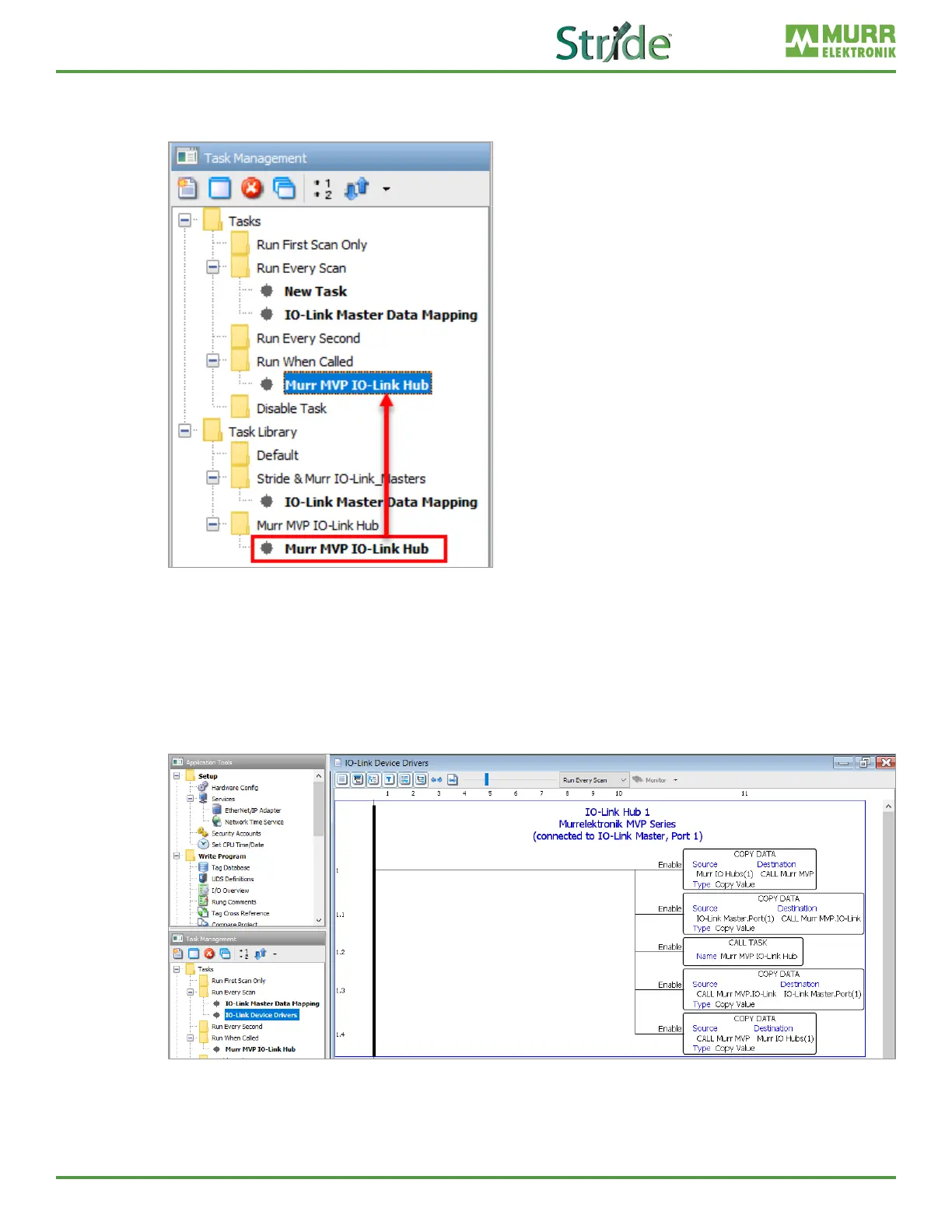 ‘Murr DIO Hub’. Then in the Run Every Scan task folder, create a new task (called IO-Link Device