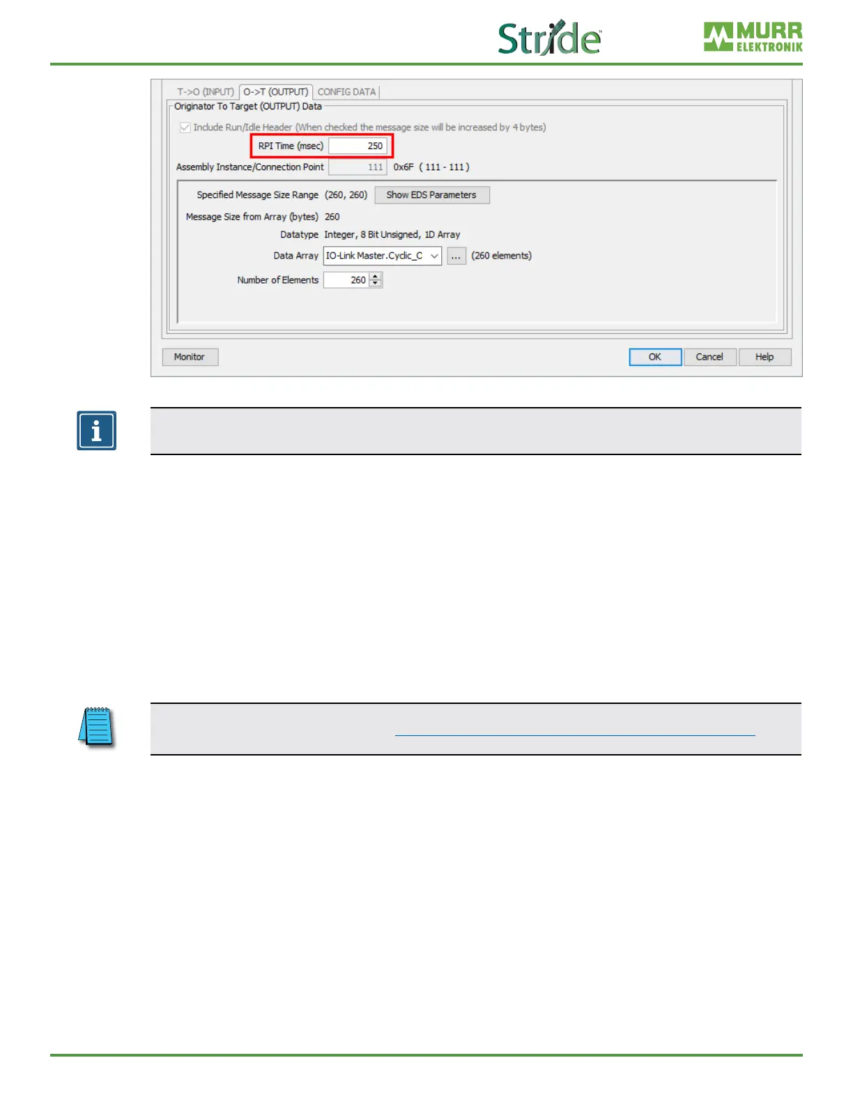 Fig. 8-3: EtherNet/IP Client Properties – O->T (Output) RPI Time.