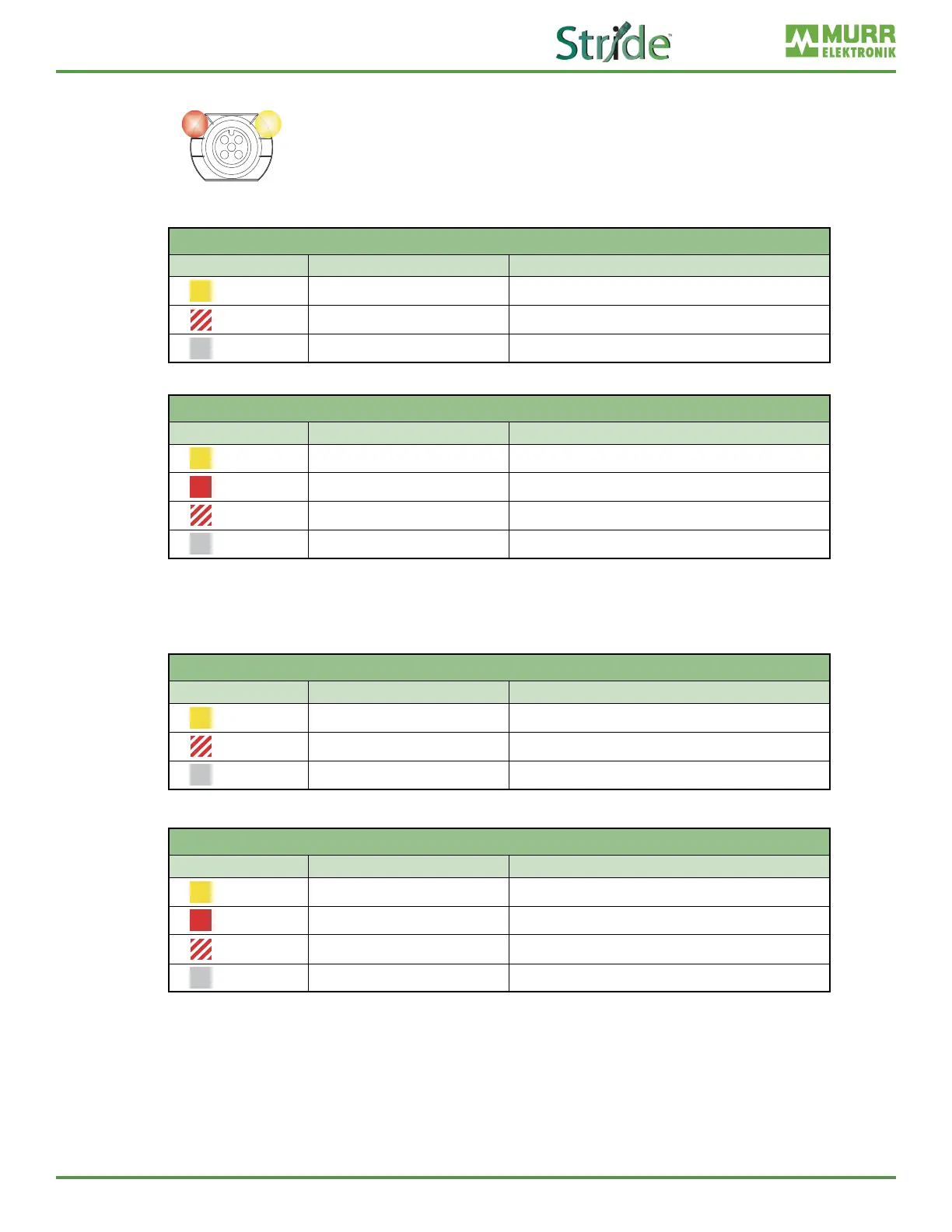 Flashing at 1Hz Overload/short circuit in sensor supply 24V + Pin1