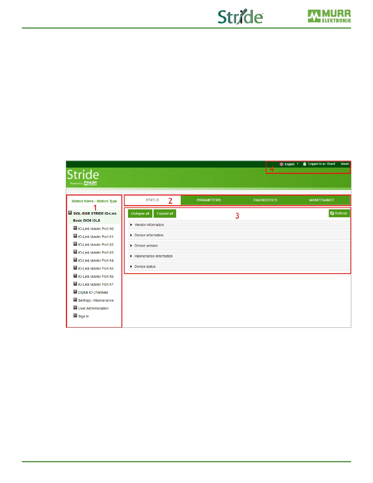 The menu bar enables you to switch between the dierent pages of the device or the sub-function.