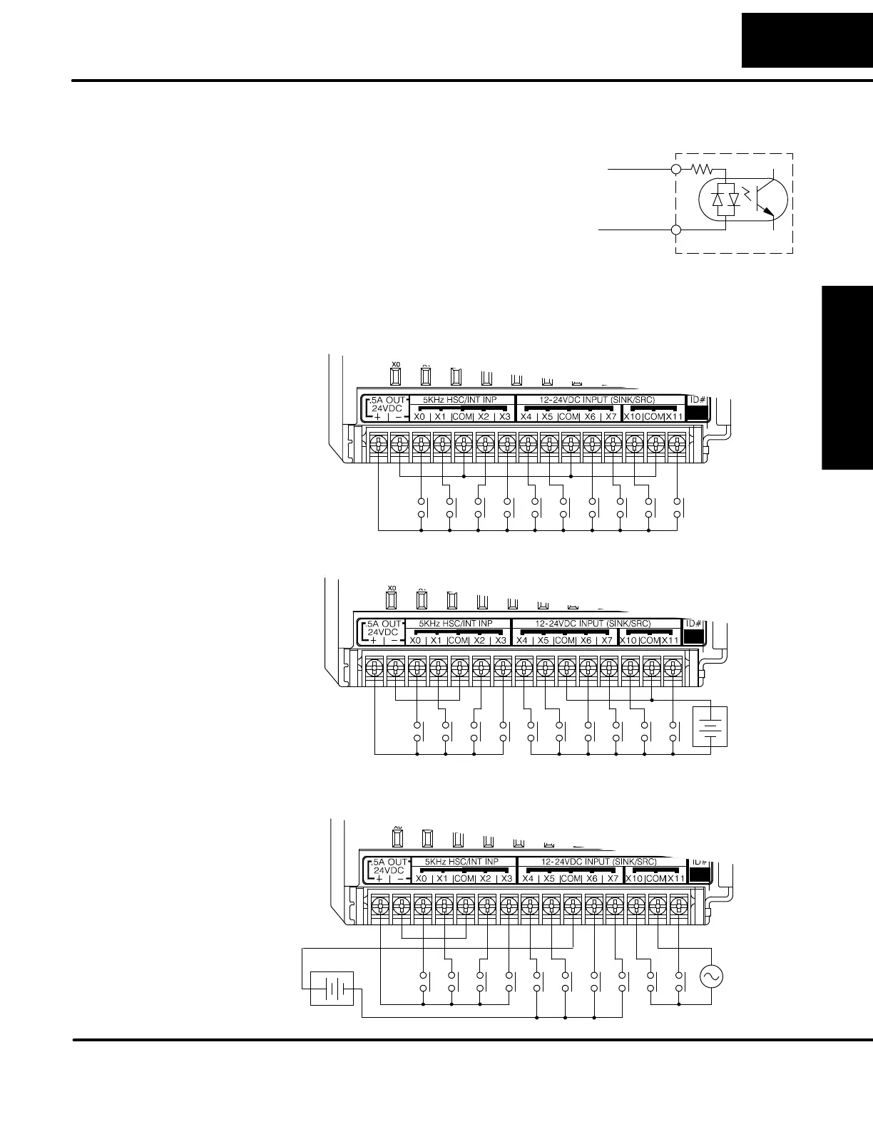 In the last example, four inputs are sinking DC, four are sourcing DC, and two are