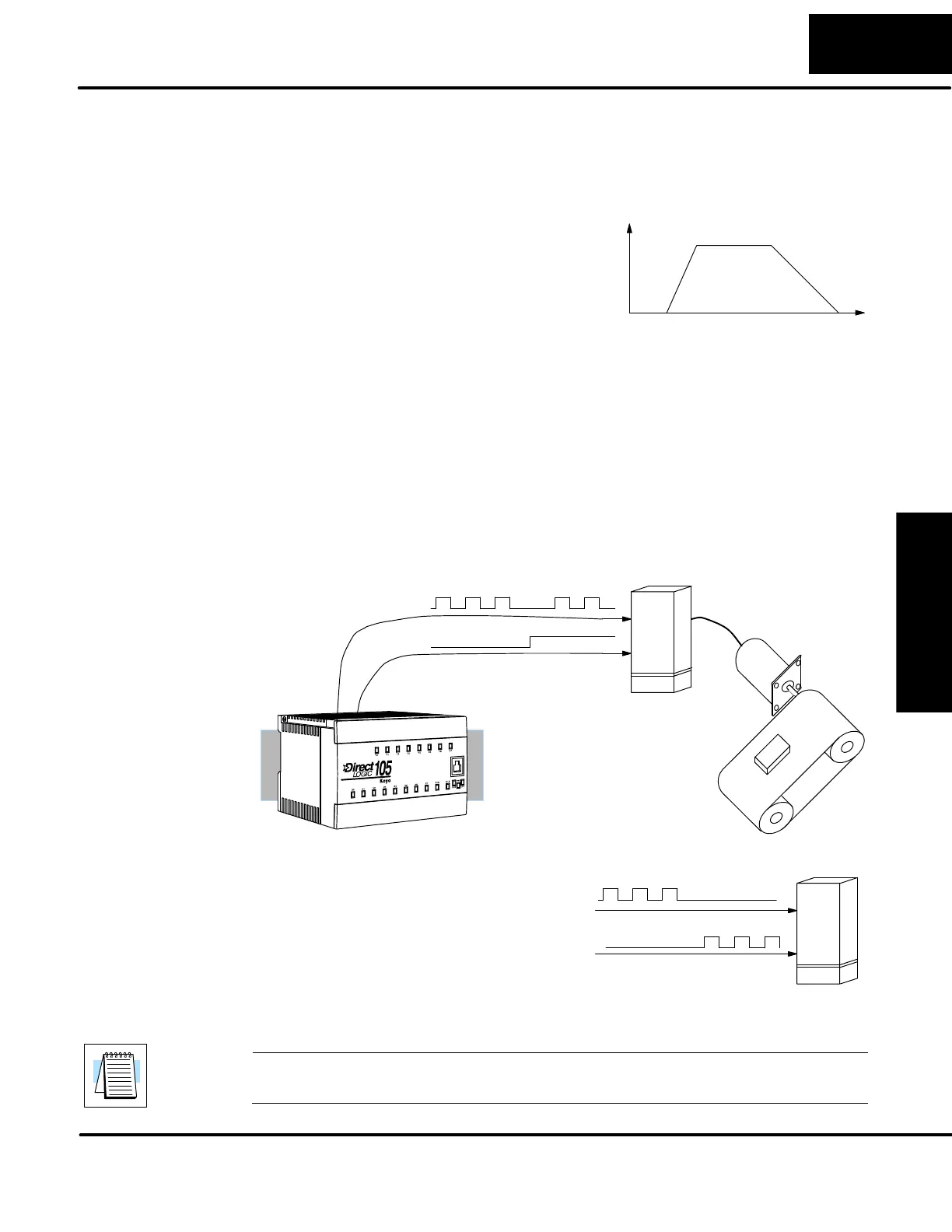 figure below shows the DL105 generating pulse and direction signals to the drive