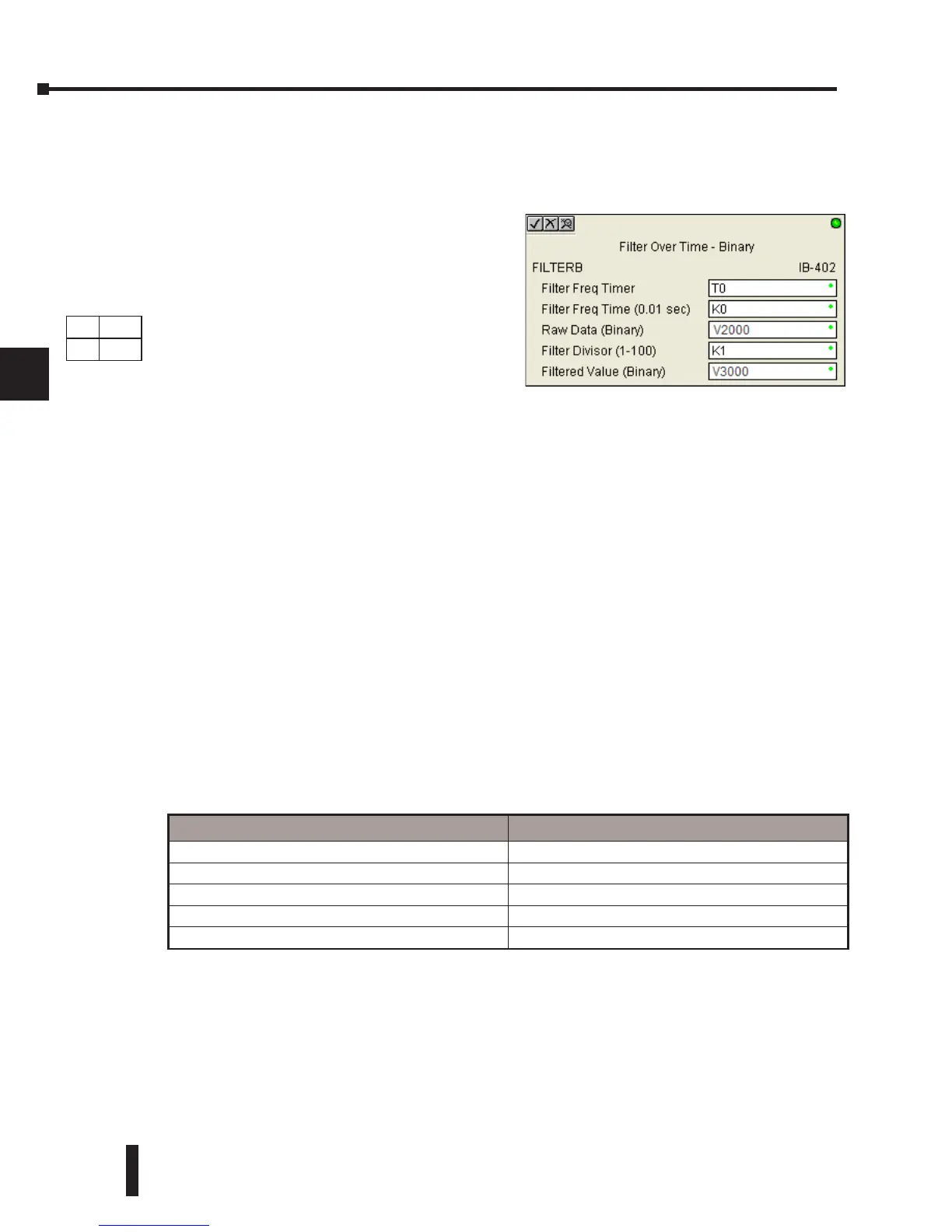 • Filtered Value (Binary): specifies the V-memory location where the filtered binary (decimal) value