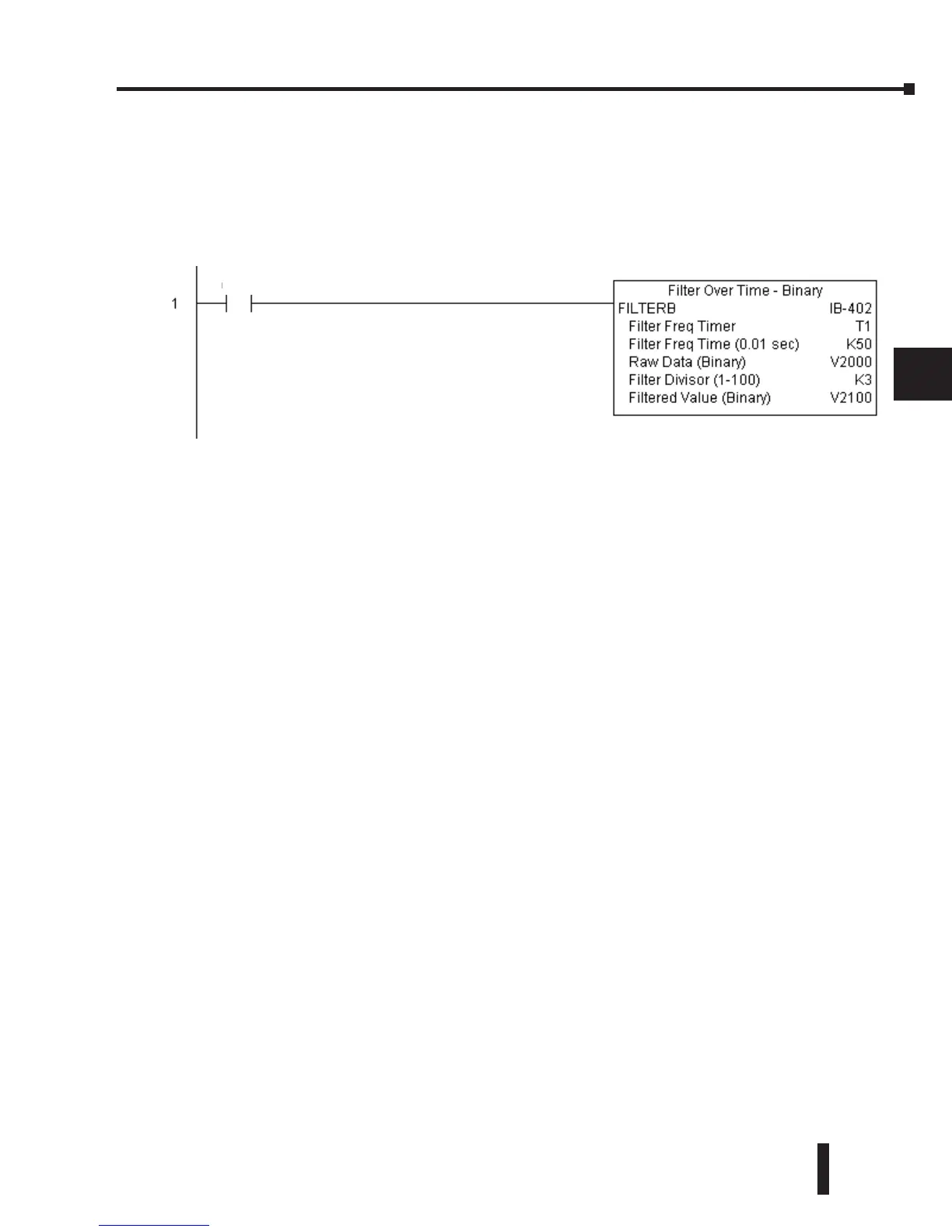 In the following example, the FILTERB instruction is used to filter a binary value that is in