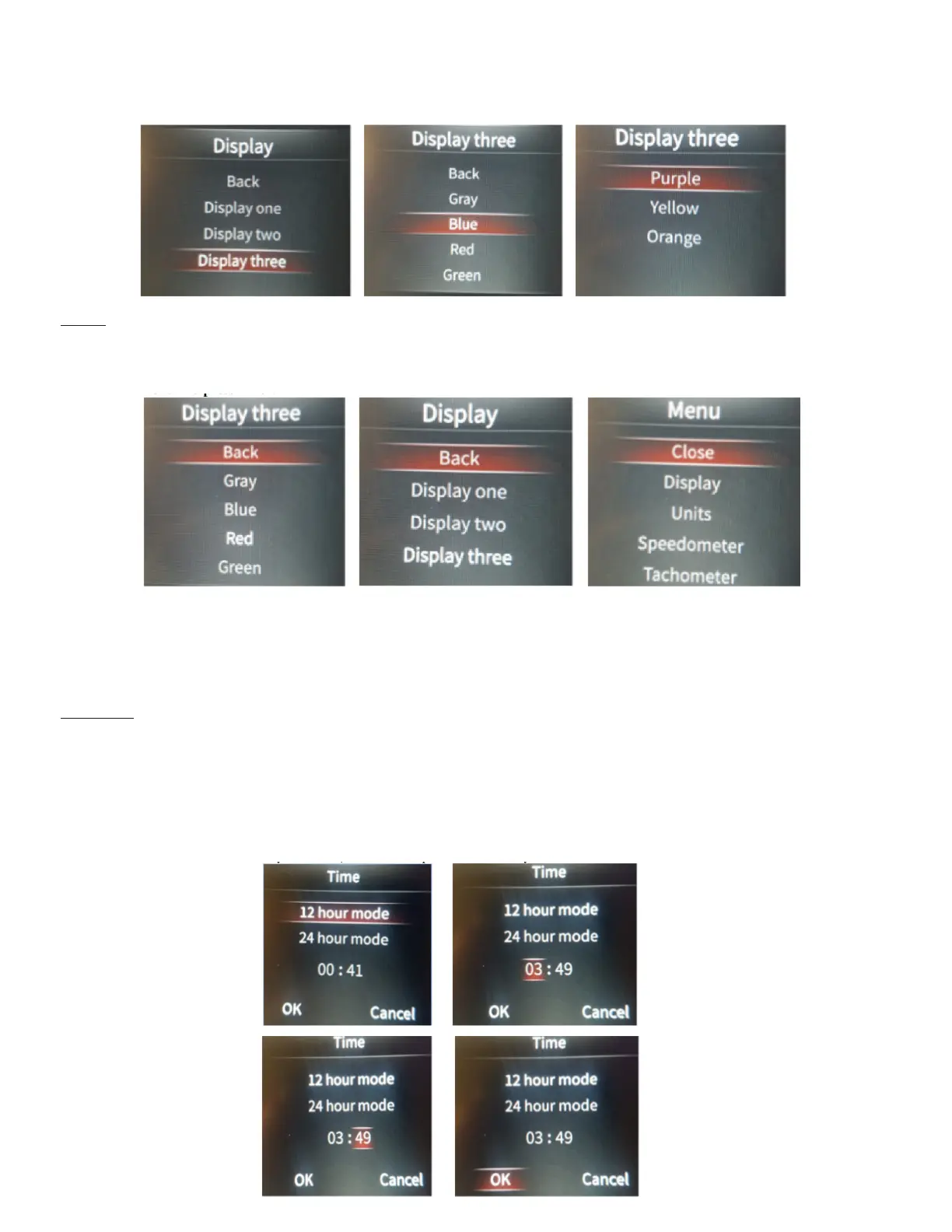 To Exit, simply scroll up to Back, and press Enter., then scroll up to Back on the Display menu, and press Enter, then scroll up to Close on