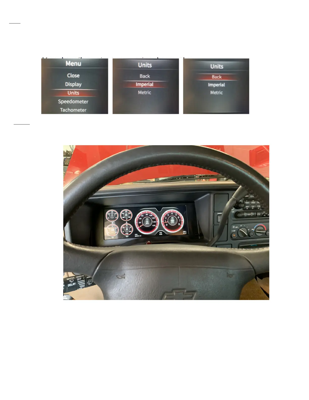 Other users may choose Metric, which changes your temperature to “C”, Oil Pressure to “BAR”, Odometer to “km”, and Speedometer to