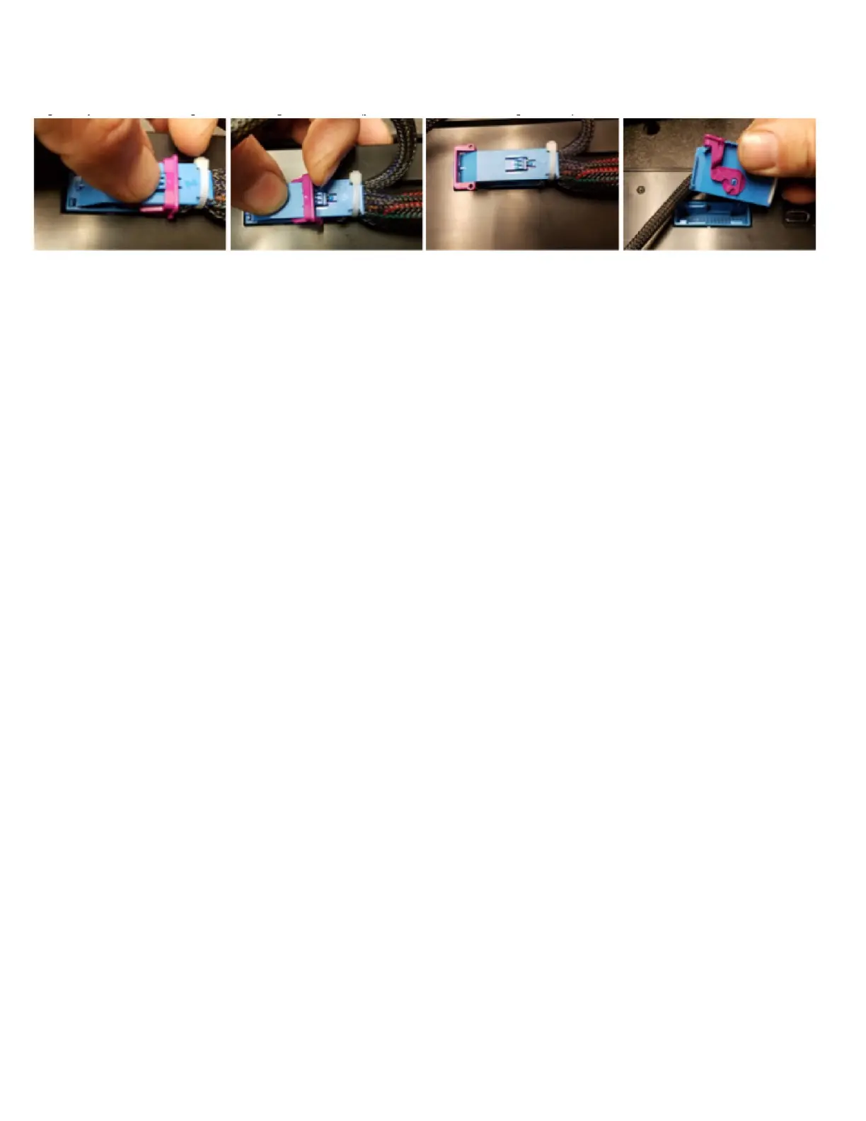 the rear of the InVision Digital Dash. Push down on the blue locking tab, so that you can pull the pink latch all the way up, and over as shown