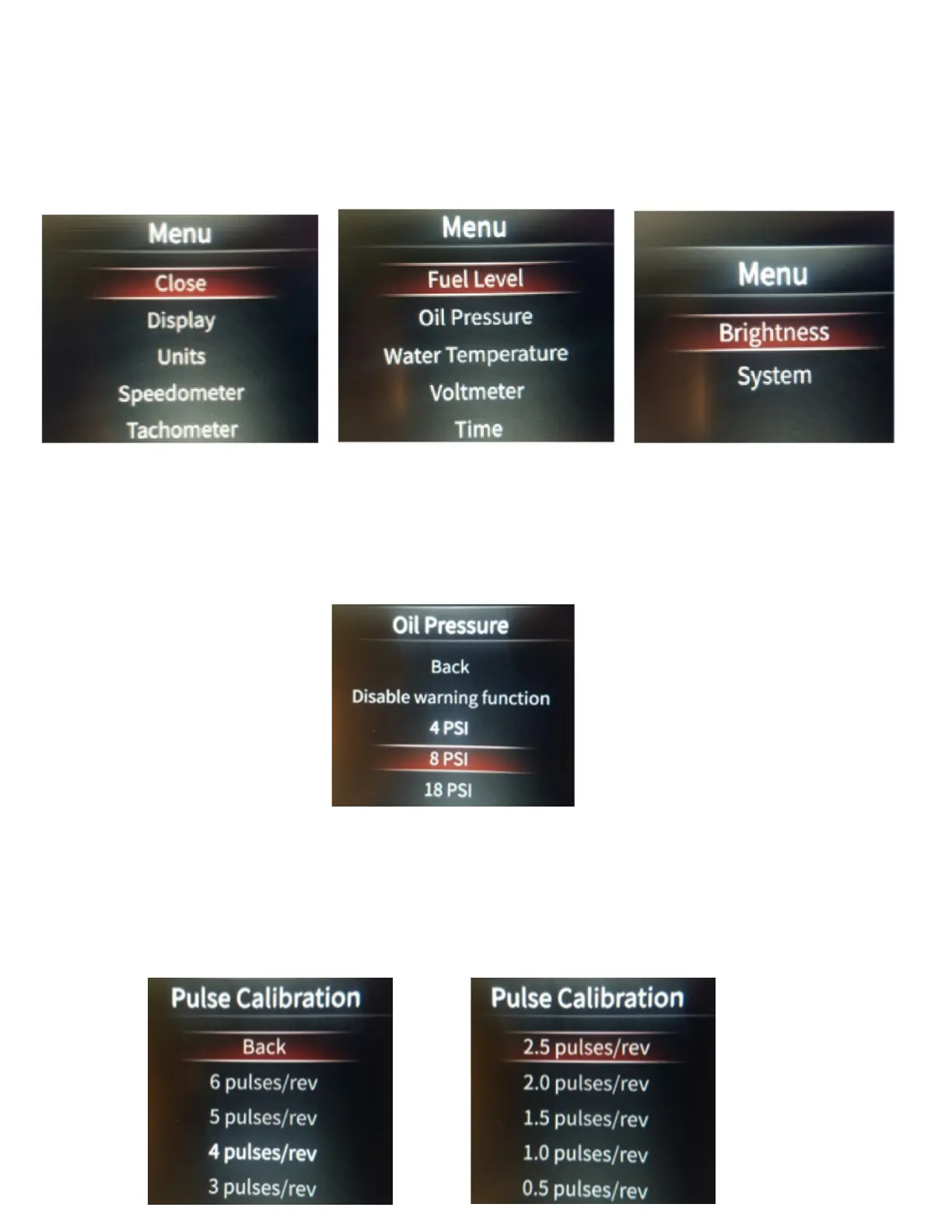 To adjust, or disable, enter into the Main Menu, then scroll to the gauge you want to adjust (we will show oil pressure here), and press
