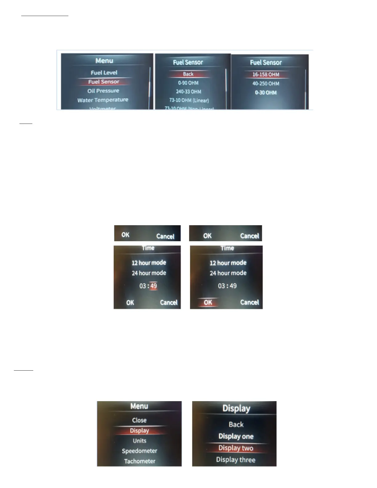 You have 7 different fuel sensor ranges to select from, select the one that matches your vehicles fuel sender and press enter. Once you