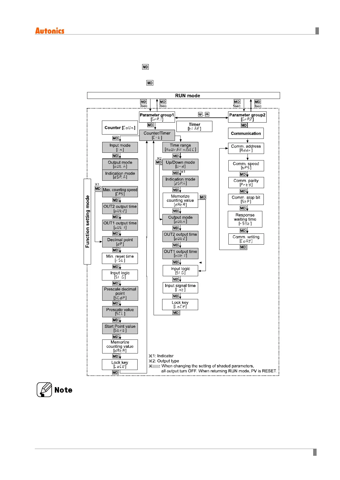 In setting mode, hold the key for 3 sec to return RUN mode.