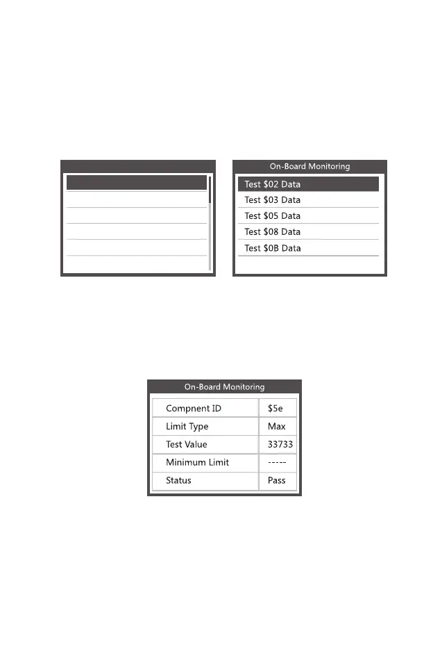Sélectionnez Surveillance intégrée dans le menu de diagnostic et appuyez