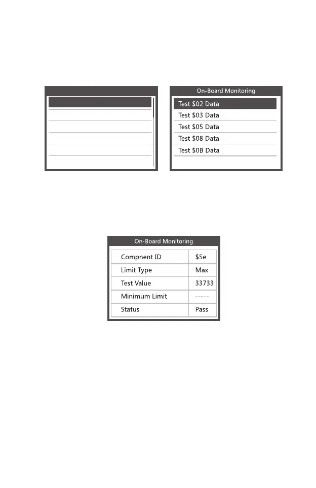 Seleccione Monitoreo a bordo en el Menú de diagnóstico y presione ENTER