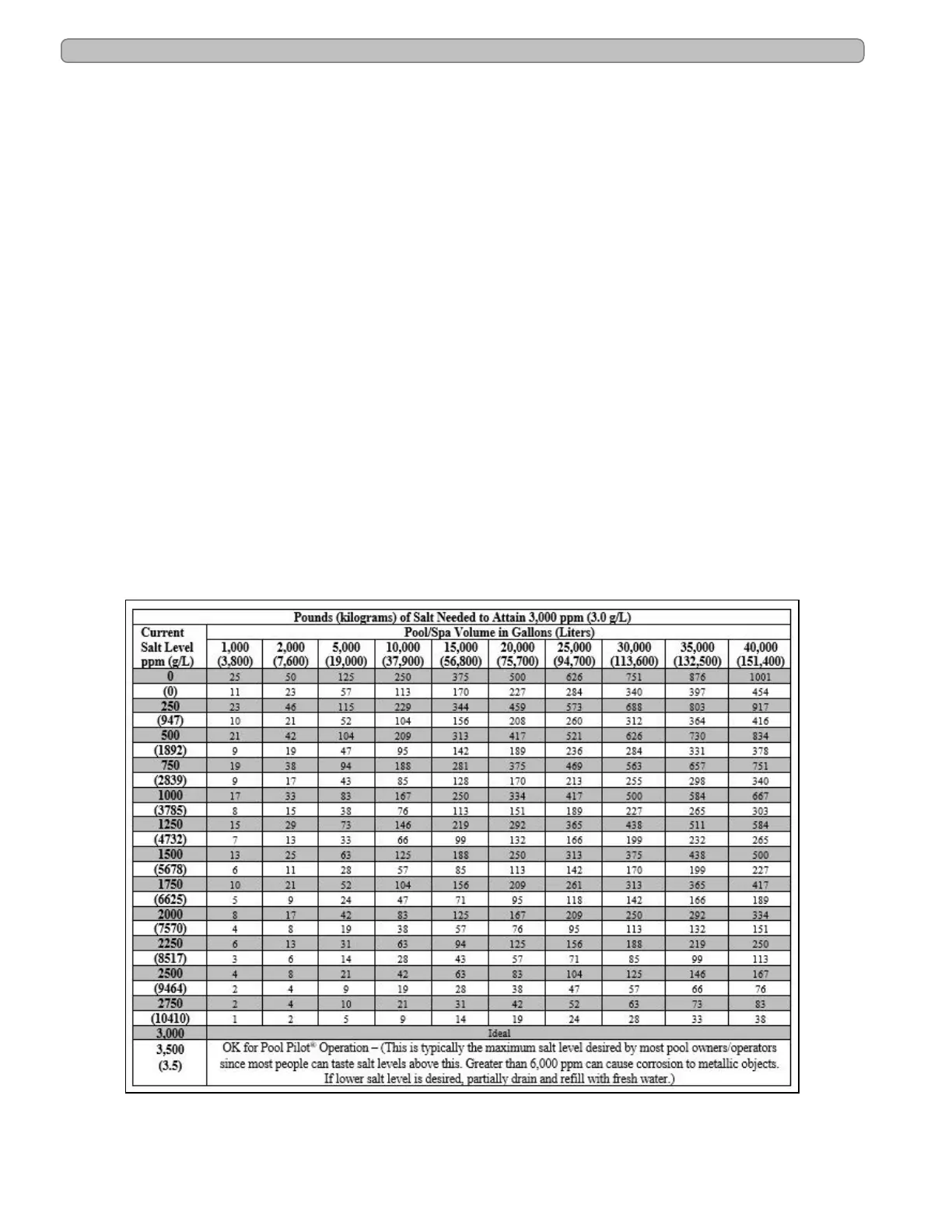 water before adding salt. (This can be obtained from the control display or by testing water.)