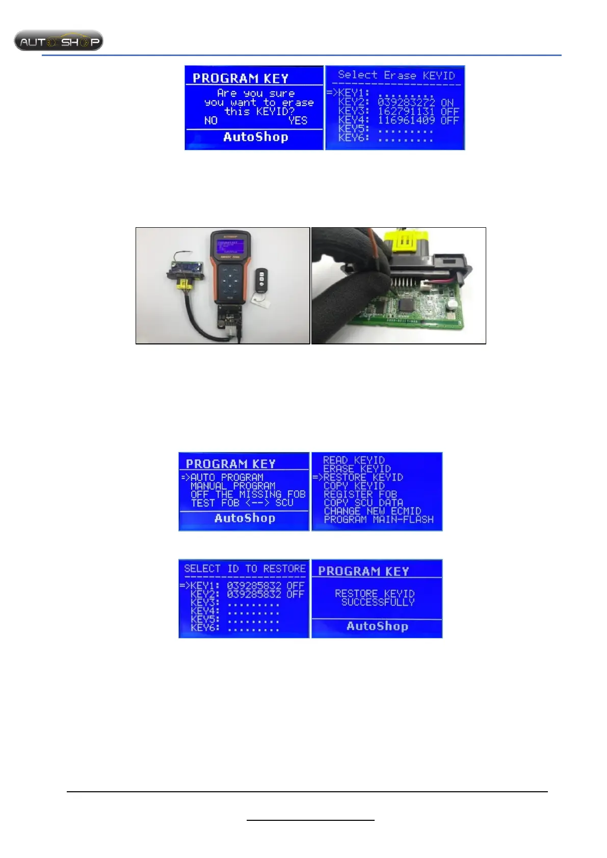 Step 1: Select “AUTO PROGRAM” Step 2 : Select “RESTORE KEYID”