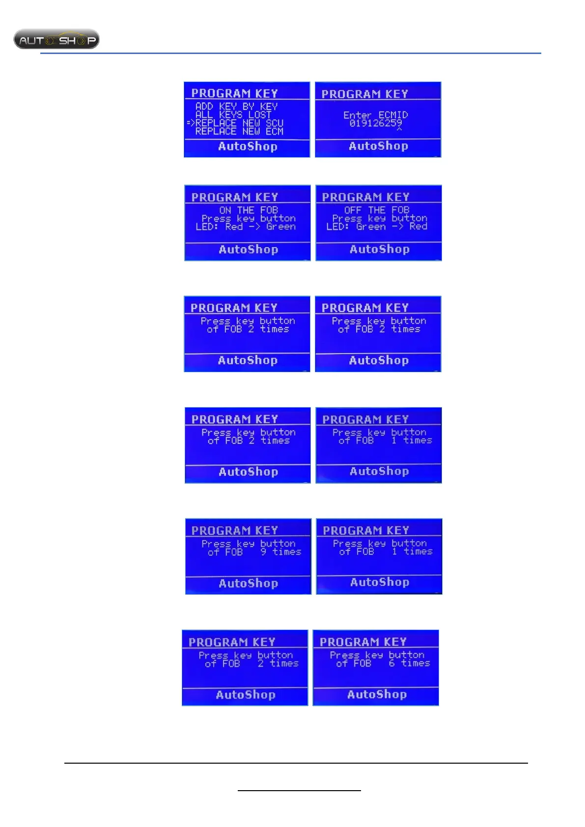 Step 7: Press key button of FOB 2 times Step 8: Press key button of FOB 1 times