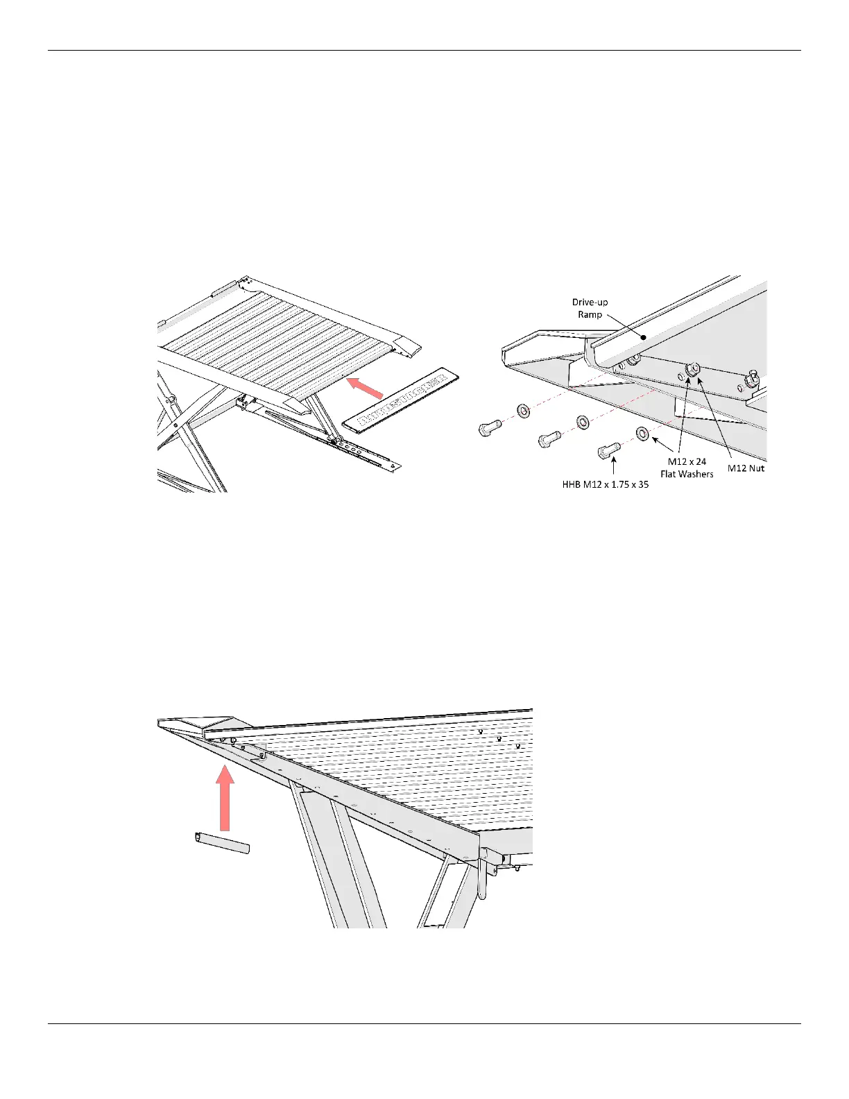 5. When the Drive-Up Ramp is correctly oriented, connect it to the Platform Arm using three Bolts,
