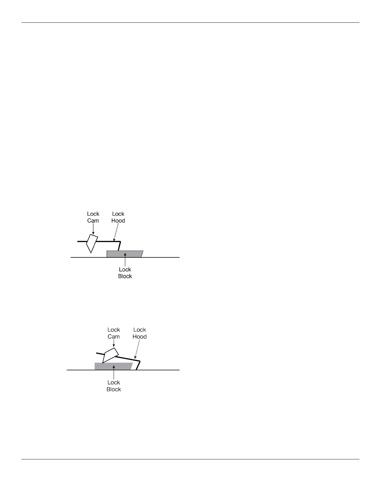 The following drawing shows the Lock Cam and Lock Hood passing over a Lock Block.