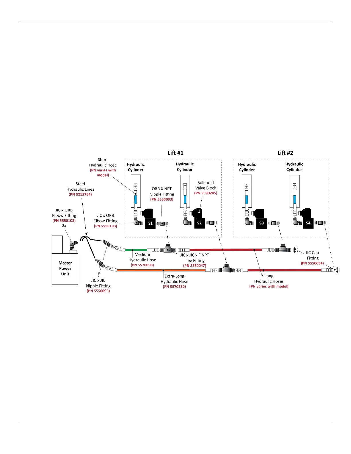 To install the Hydraulic Hoses, you will use parts from two separate kits: The MPU Plumbing Kit and
