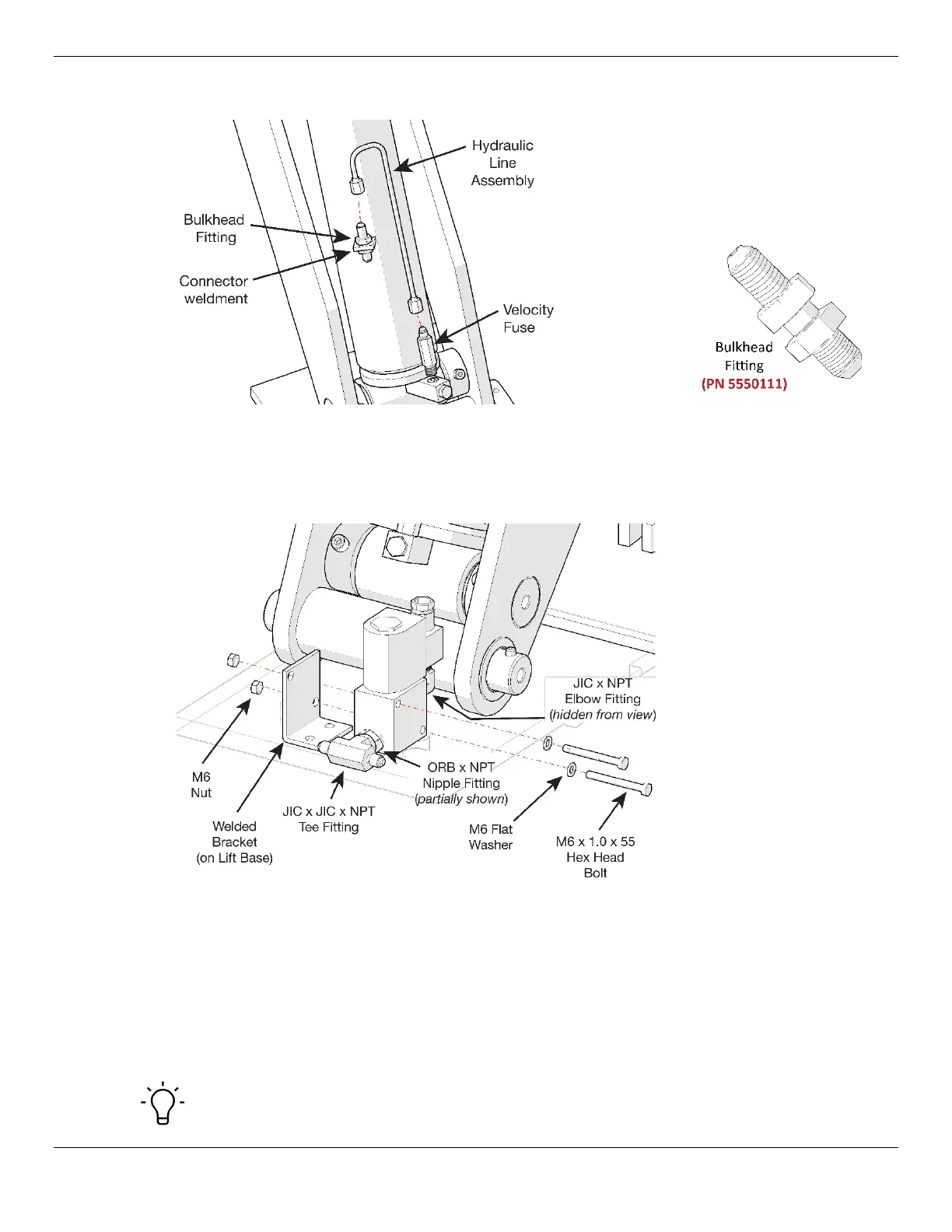 7. Attach a Short Hydraulic Hose to each Hydraulic Line Assembly, then attach the other end of each