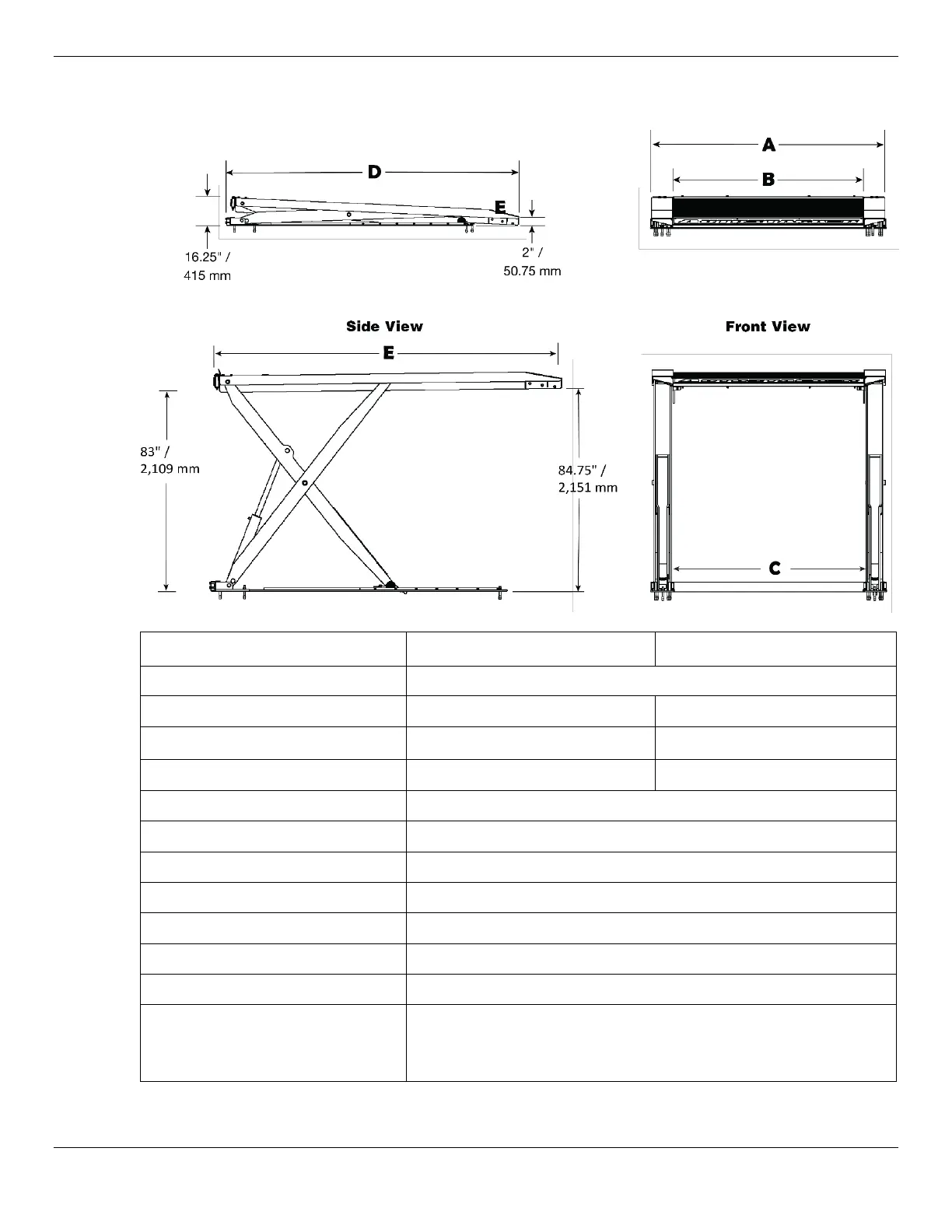 B Platform width 83.75" (7 feet) / 2,127 mm 91.75" (7.7 feet) / 2,331 mm