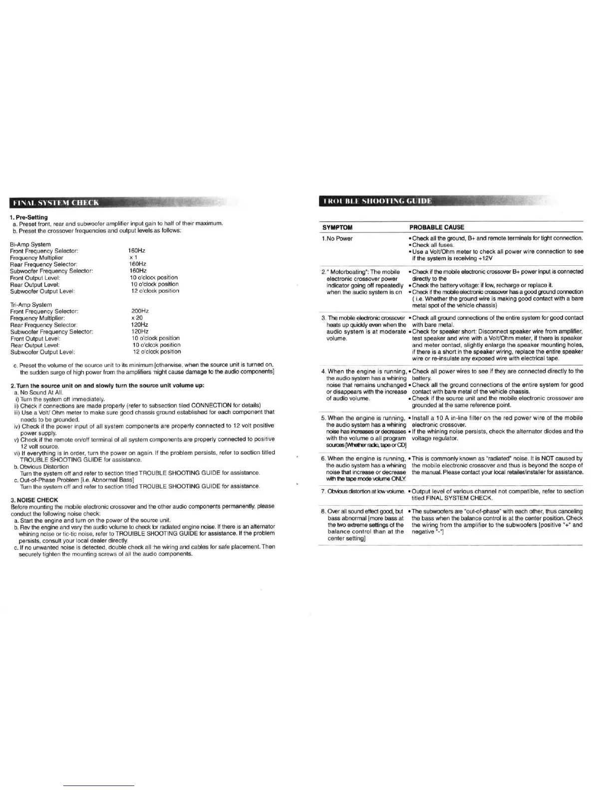 Autotek ATK2X - System Check and Troubleshooting; Final System Check Procedures; Trouble Shooting Guide
