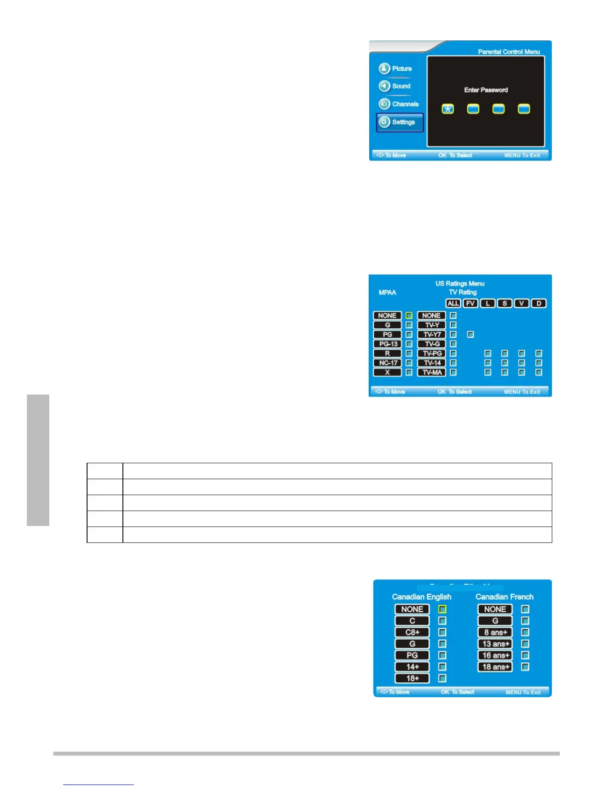 2. Press or to select Canadian Ratings, then