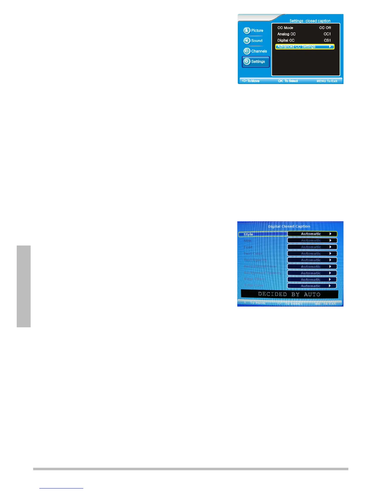 4. Press or to choose CC Mode, Analog CC, or Digital CC, then press to enter