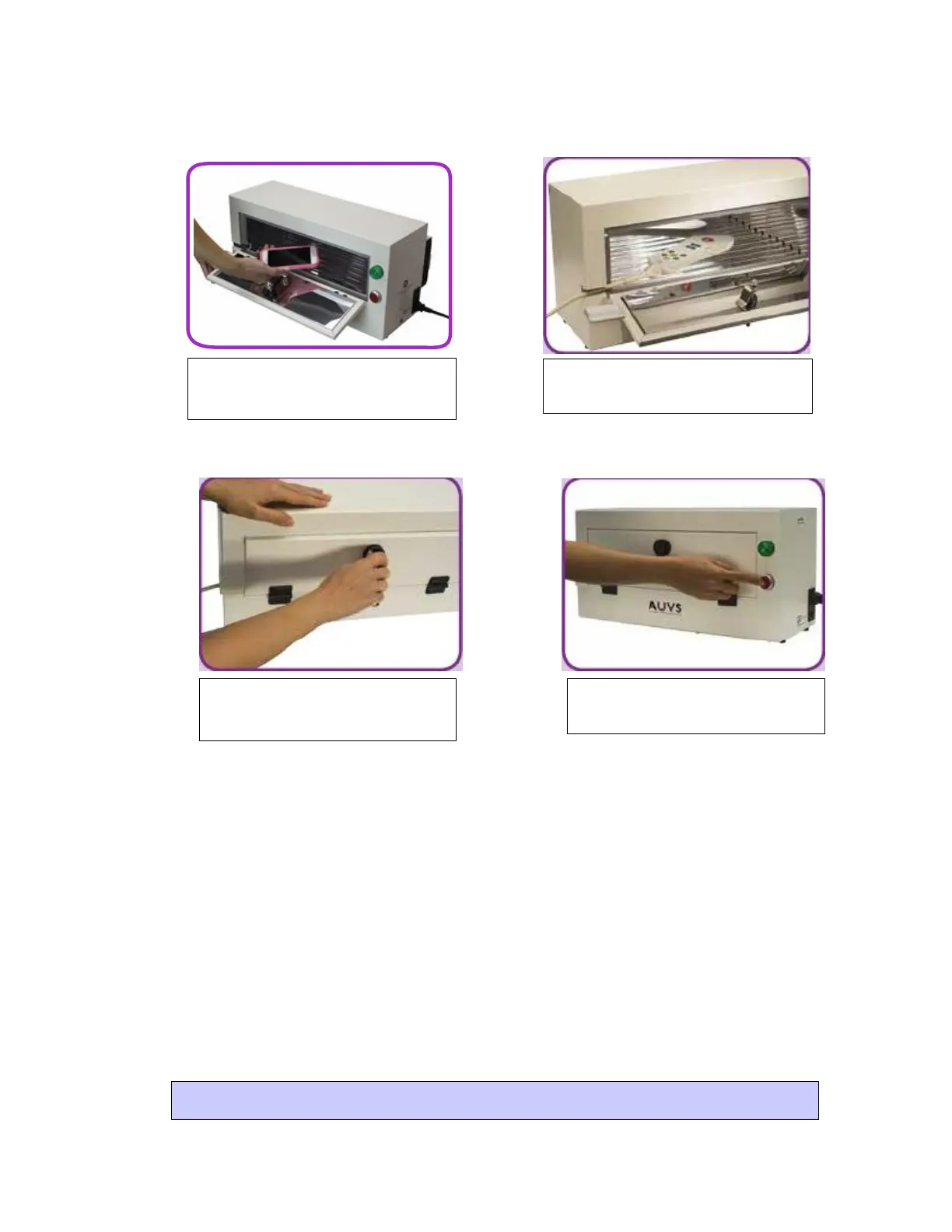 Place item(s) in the AUVS Germicidal Enclosure (UV Box). For items with cords (or leads) that