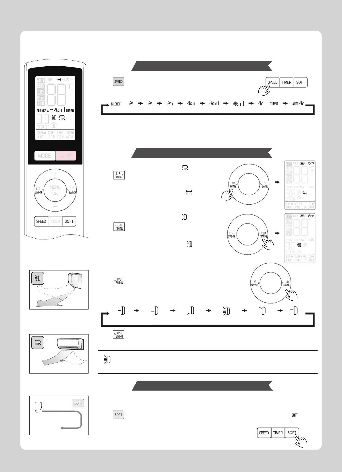 b.Press any of the “SOFT” button, “OFF”, “U/D SWING”