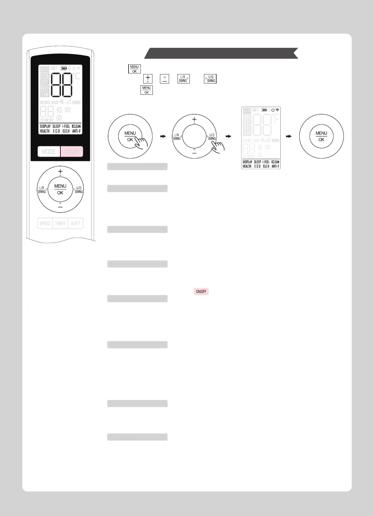 When the air conditioner and remote are off, select this function to activate. Upon activation,