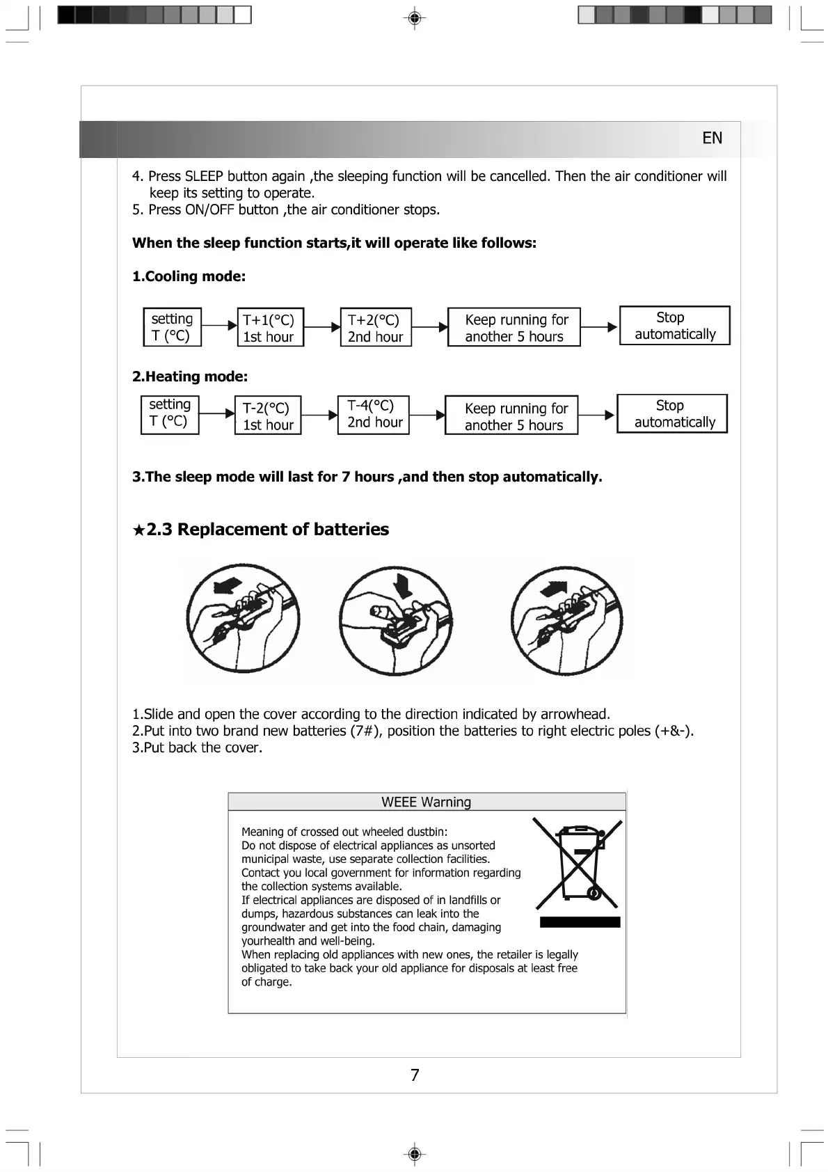 3.The sleep mode will last for 7 hours,and then stop automatically.