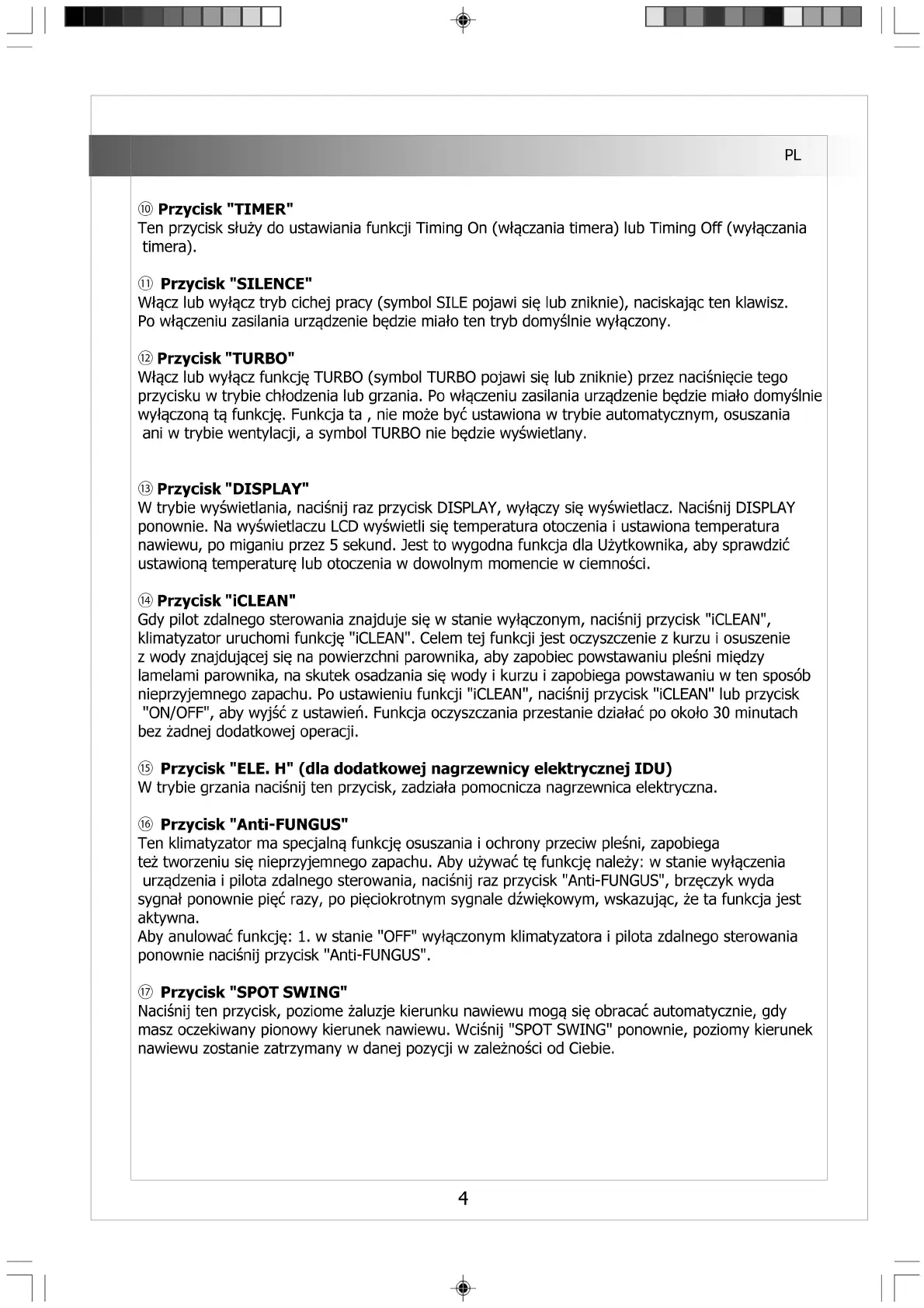 Aby anulować funkcję: 1. w stanie "OFF" wyłączonym klimatyzatora i pilota zdalnego sterowania