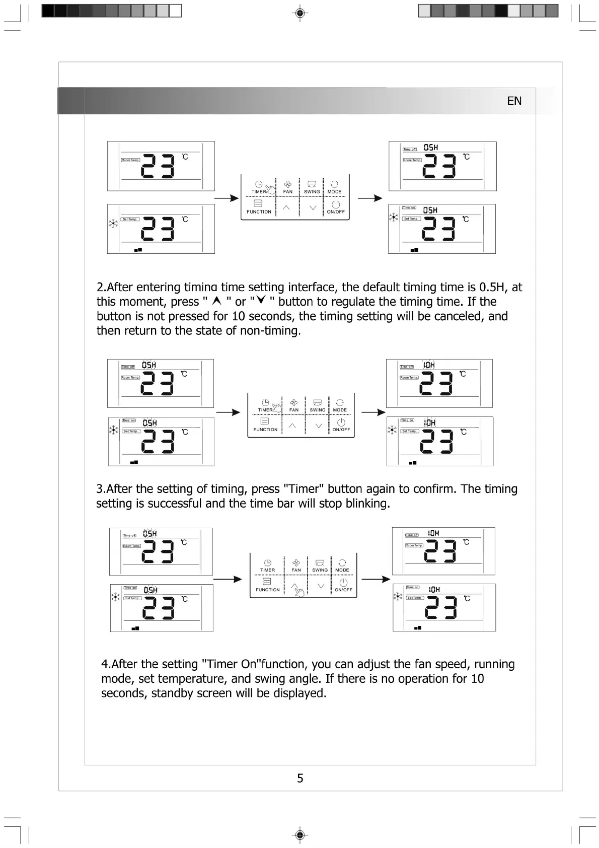 4.After the setting "Timer On"function, you can adjust the fan speed, running